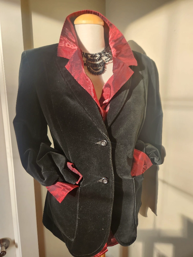 1970s Black Velvet vintage vampire Blazer size medium/large,