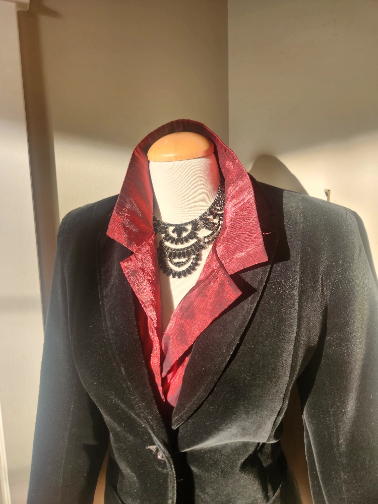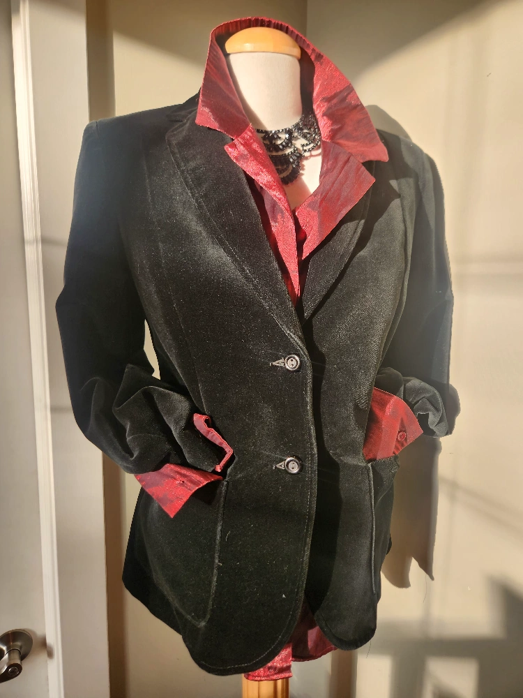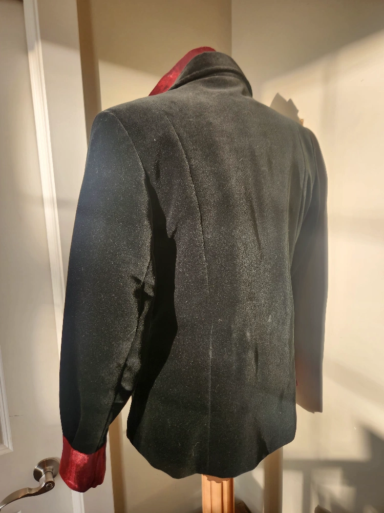 Selling a stylish black velvet blazer. It's in great condition and ready to add a touch of elegance to your wardrobe!