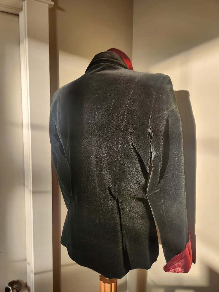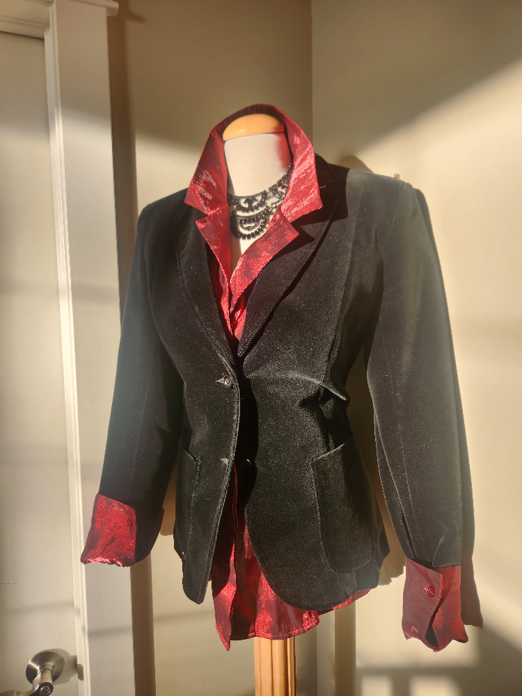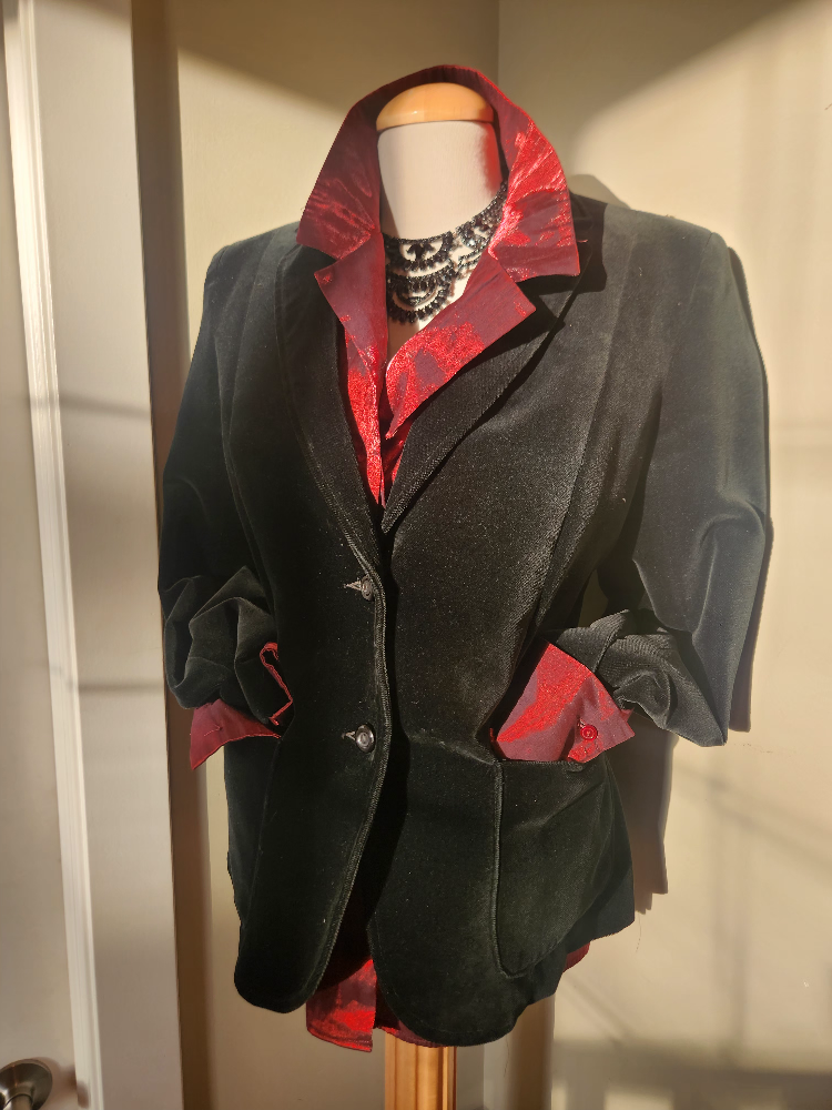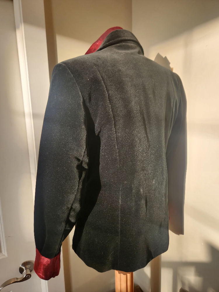 Selling a stylish black velvet blazer. It's in great condition and ready to add a touch of elegance to your wardrobe!