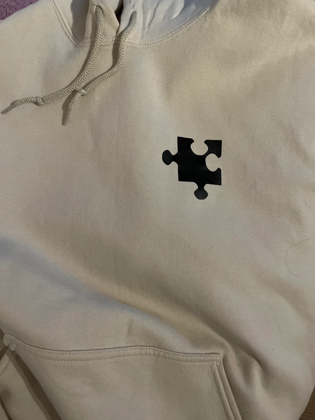 One features a large black puzzle heart graphic on the front (size medium) The other has a small black puzzle piece graphic on the chest (sir large)