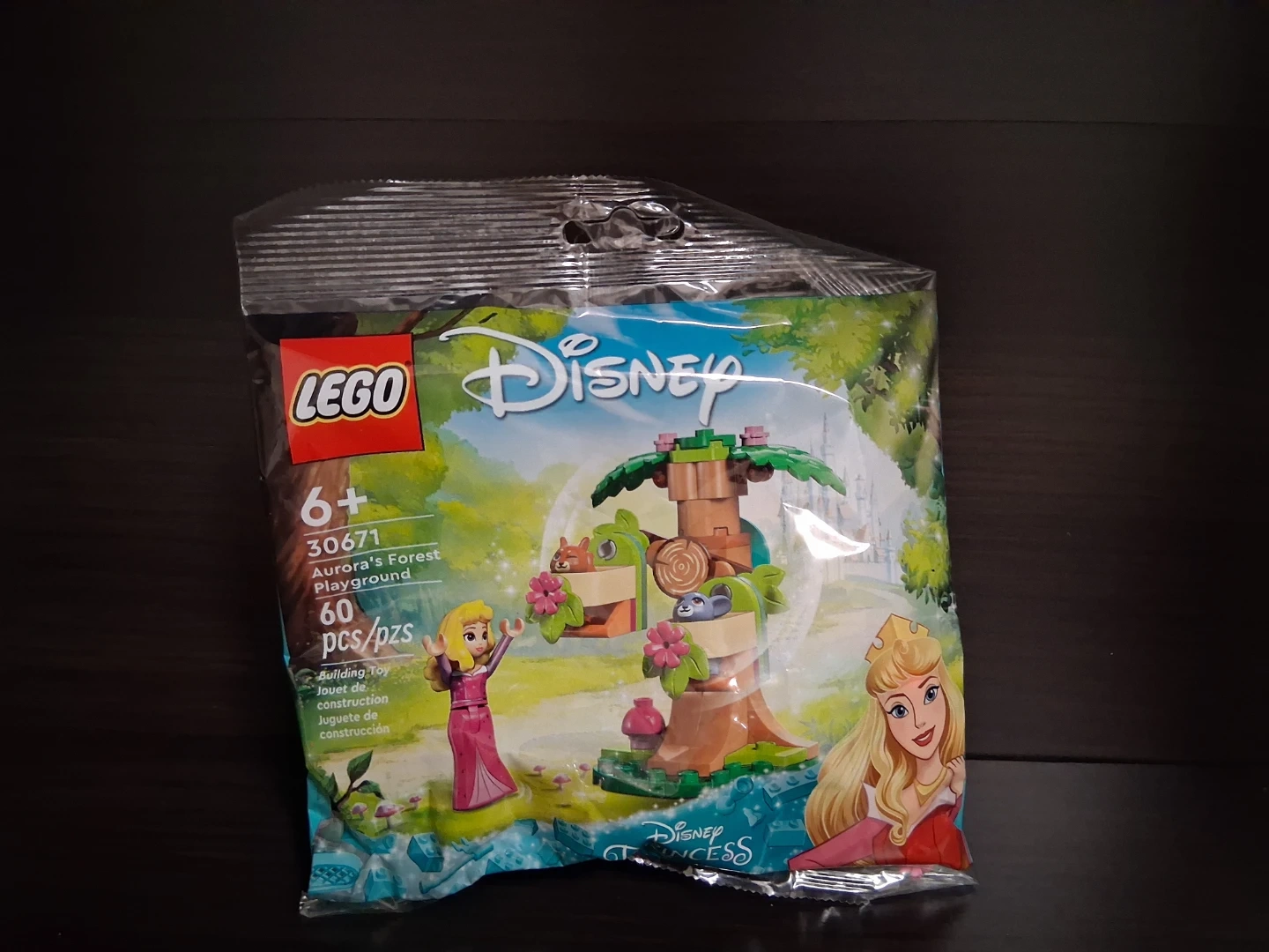 This LEGO Disney Princess set features Aurora's Forest Playground with 60 pieces. It's designed for ages 6 and up. Build a magical forest scene with this building toy!