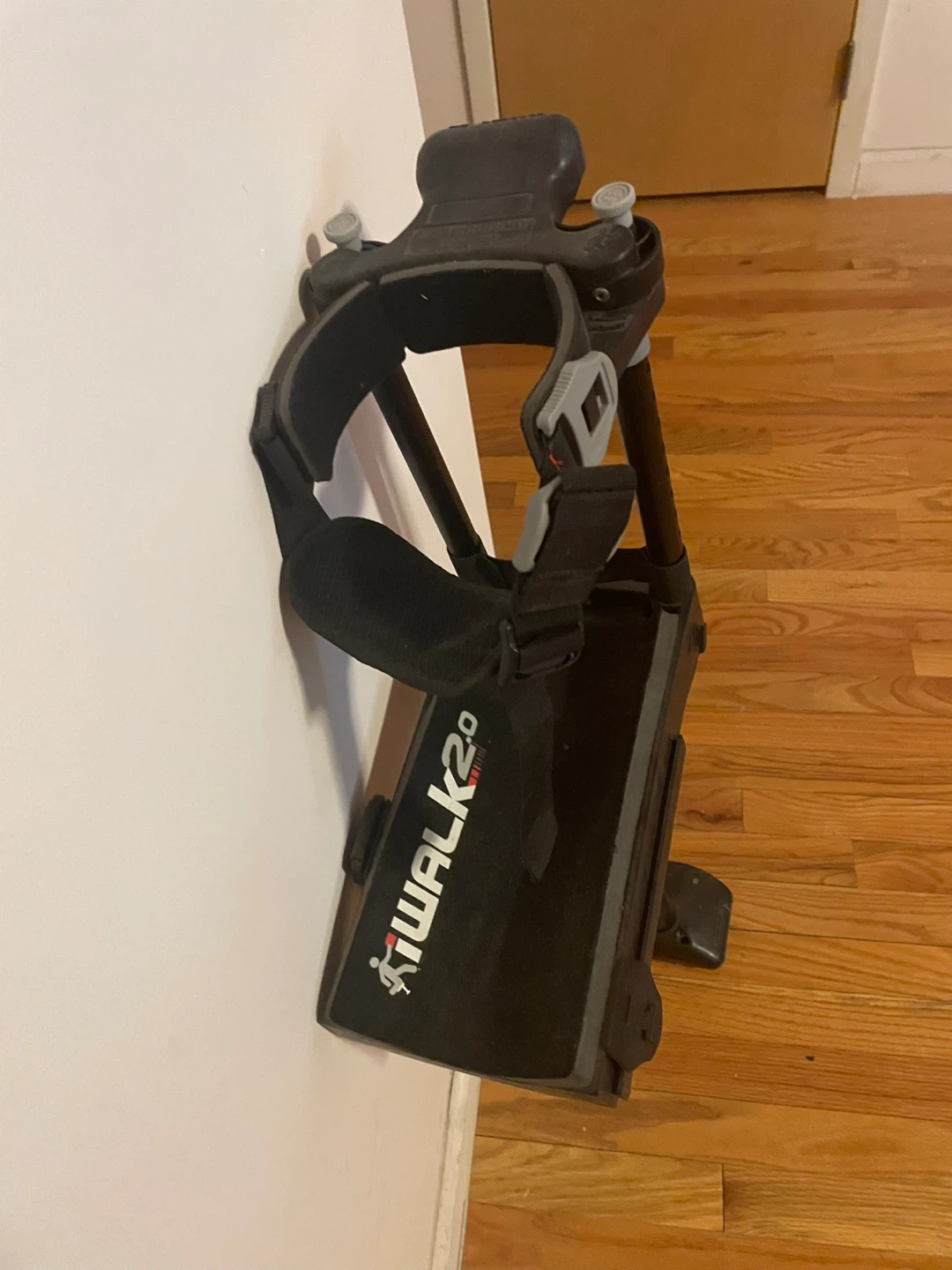This is an iWALK 2.0 hands-free crutch. It's designed to help users with lower leg injuries stay mobile. Sturdy construction and adjustable straps. Never used