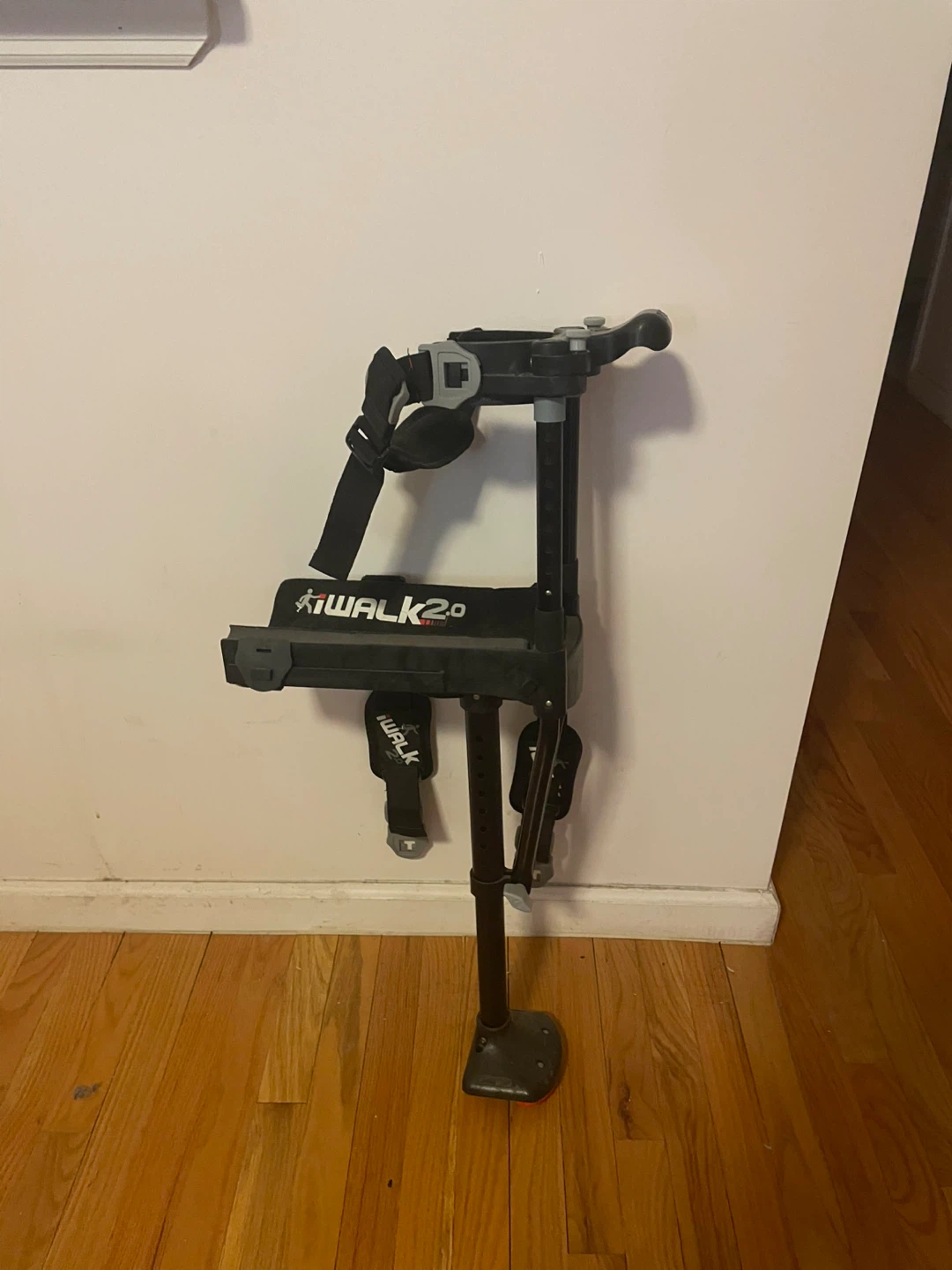 This is an iWALK 2.0 hands-free crutch. It's designed to help users with lower leg injuries stay mobile. Sturdy construction and adjustable straps. Never used