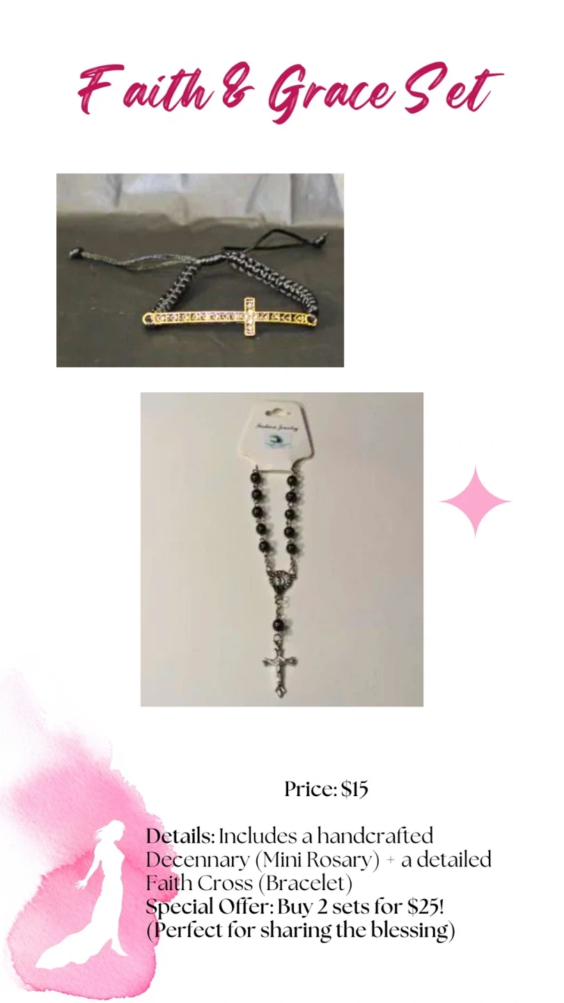 โจ Faith & Grace Set ($15): Handcrafted Decenary (mini rosary) + detailed Faith Cross bracelet. Special: 2 sets for $25!