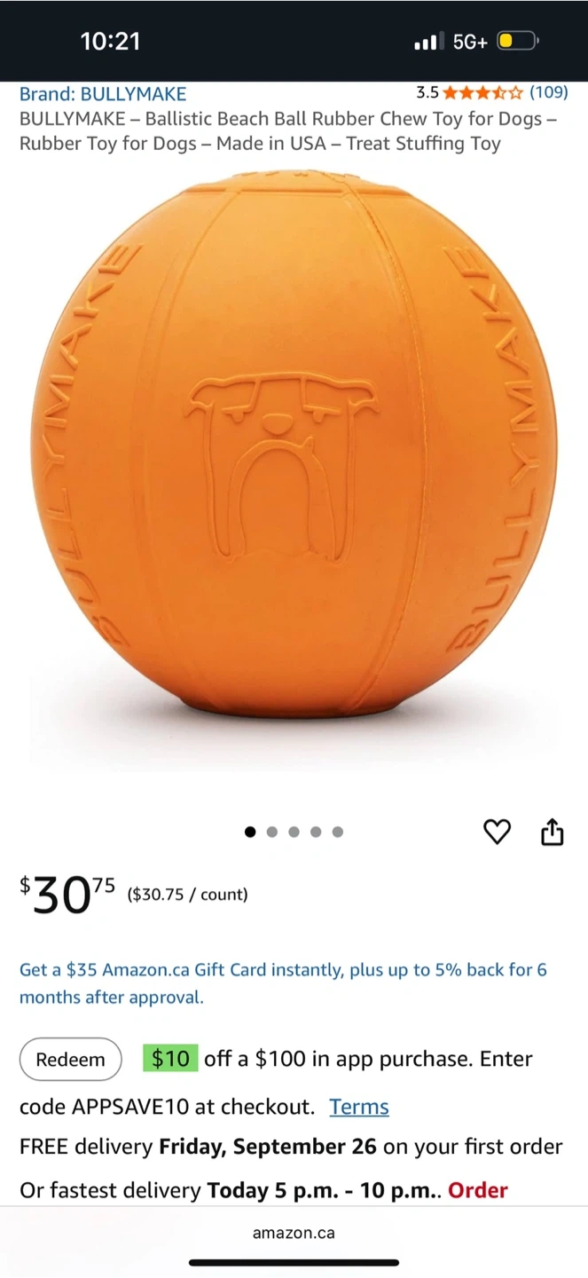 I can do the same as amazon but you need to buy 100 dollars worth of toys so 5 toys in total and the 6th toy will be 10 dollars it will stay that way until I have less then 6 then its 20 per toy as usual BULLYMAKE rubber keg chew toy for dogs. Durable rubber construction. Made in USA. This toy is great for aggressive chewers!