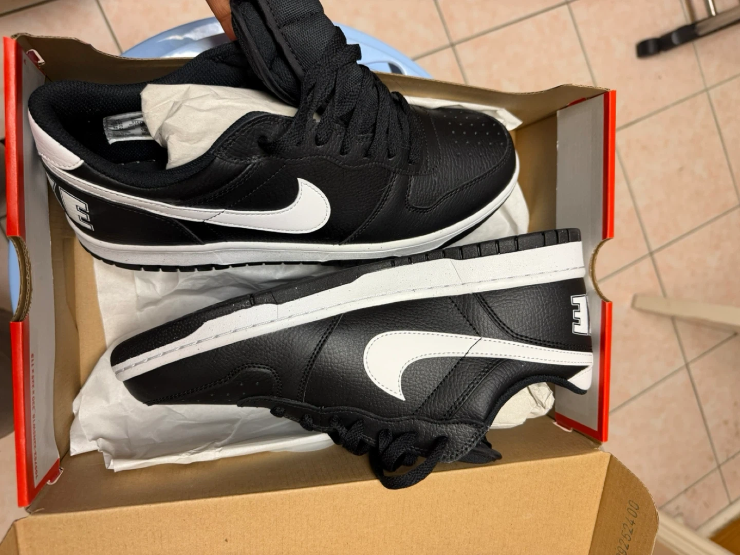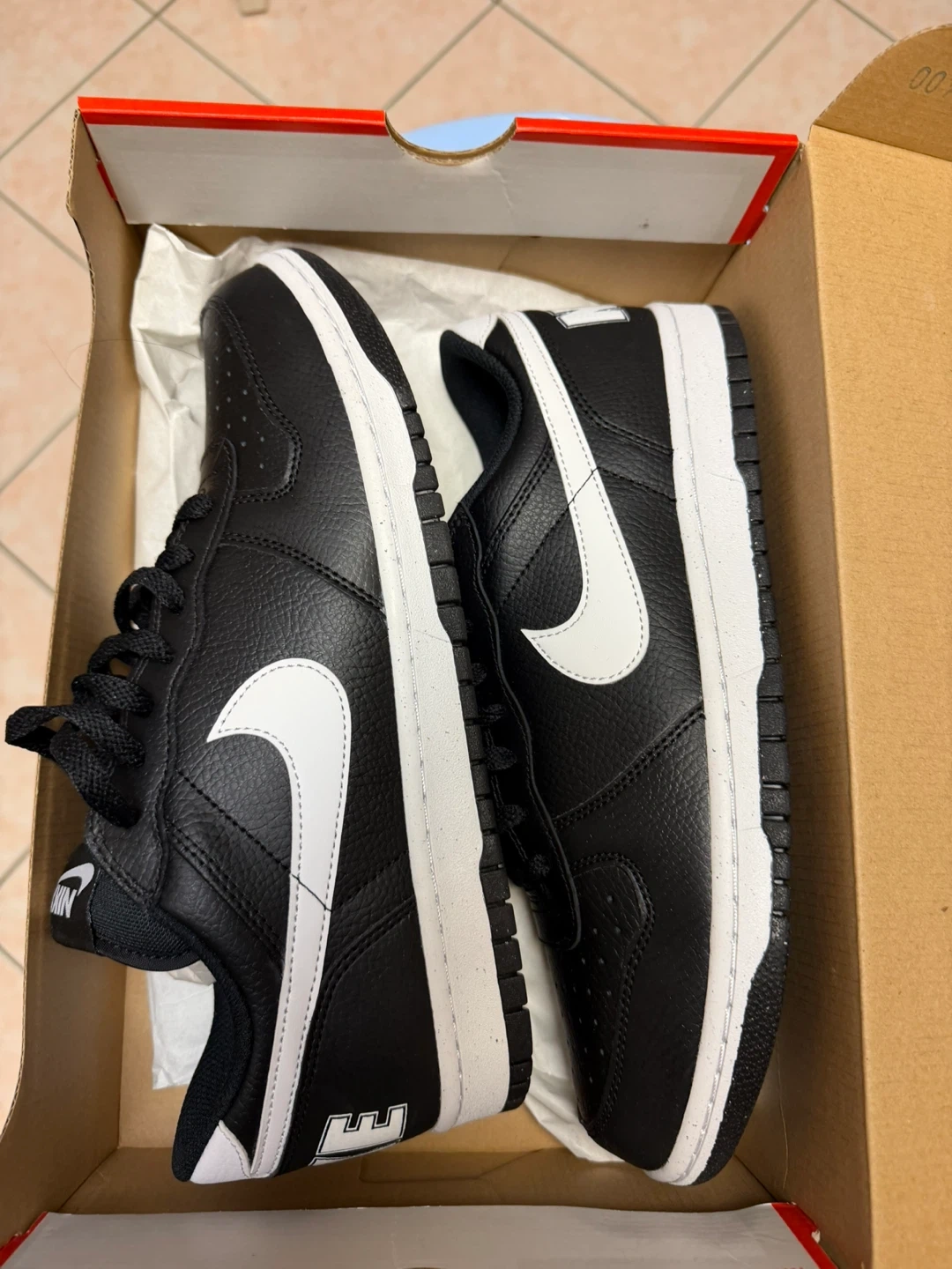 Classic black and white Nike Court Vision Low sneakers. These shoes feature a durable leather upper and a comfortable rubber sole. Comes with original box. Perfect for everyday wear!