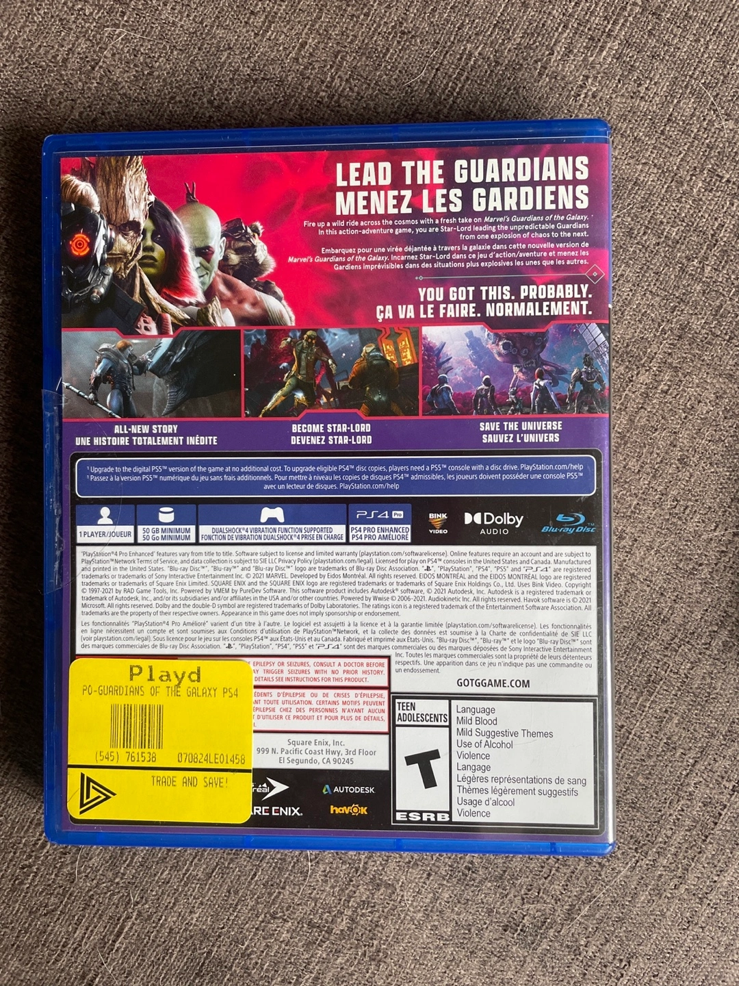 Marvel's Guardians of the Galaxy PS4 Video Game