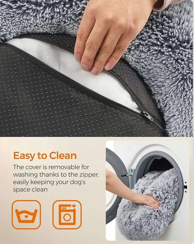 Brand-new Feandrea calming donut pet bed, perfect for your dog or cat to curl up and relax! It's designed to provide a sense of security with its soft, plush material, ensuring your furry friend feels safe and warm. The bed is easy to clean with a removable, machine washable cover. Features include: Soft Plush Material, Calming Donut Design, Removable/Washable Cover, and Non-Slip Bottom. Give your pet the gift of comfort!