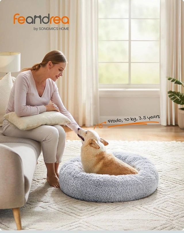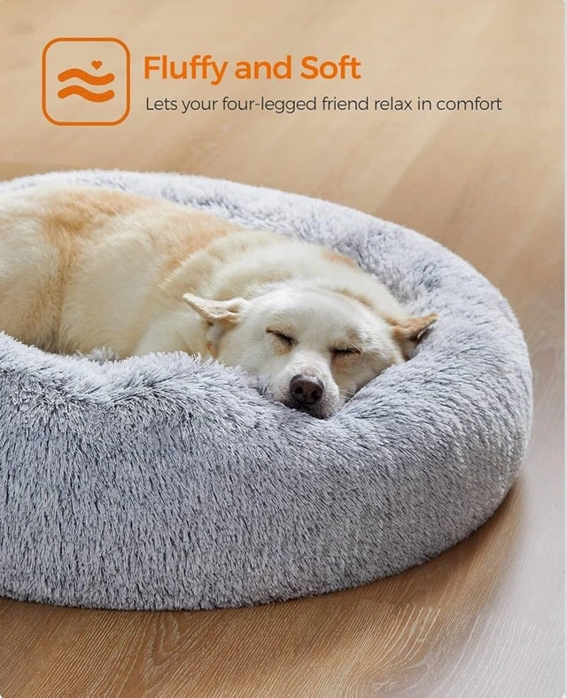 Brand-new Feandrea calming donut pet bed, perfect for your dog or cat to curl up and relax! It's designed to provide a sense of security with its soft, plush material, ensuring your furry friend feels safe and warm. The bed is easy to clean with a removable, machine washable cover. Features include: Soft Plush Material, Calming Donut Design, Removable/Washable Cover, and Non-Slip Bottom. Give your pet the gift of comfort!