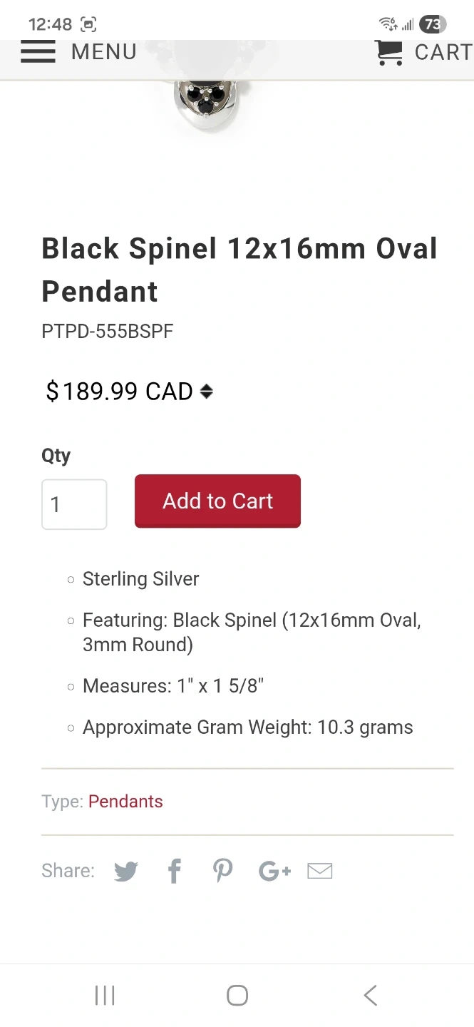 Buy & SellHimalayan Gems Sterling Silver Black Spinel PendantHimalayan Gems Sterling Silver Black Spinel Pendant$93Sterling silver pendant featuring a 12x16mm oval black spinel centre stone and 3mm round black spinel accents. Measures approximately 1" x 1 5/8".ConditionNewWHERE TO MEETPromenade Shopping CentreView MapSELLERverifiedTanyaThornhill600 reviews1 chats·0 favorites·6 viewsSEND CHAT TO SELLERHi Tanya! I’m interested in your listing.Hi Tanya! I’m interested in your listing.Get the Karrot app to chatSign In to chat