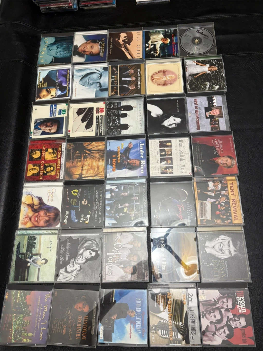 A selection of music compact discs featuring a range of artists and genres. Includes various albums from artists like Andre Gagnon and Susan Boyle. These discs are in standard CD format.