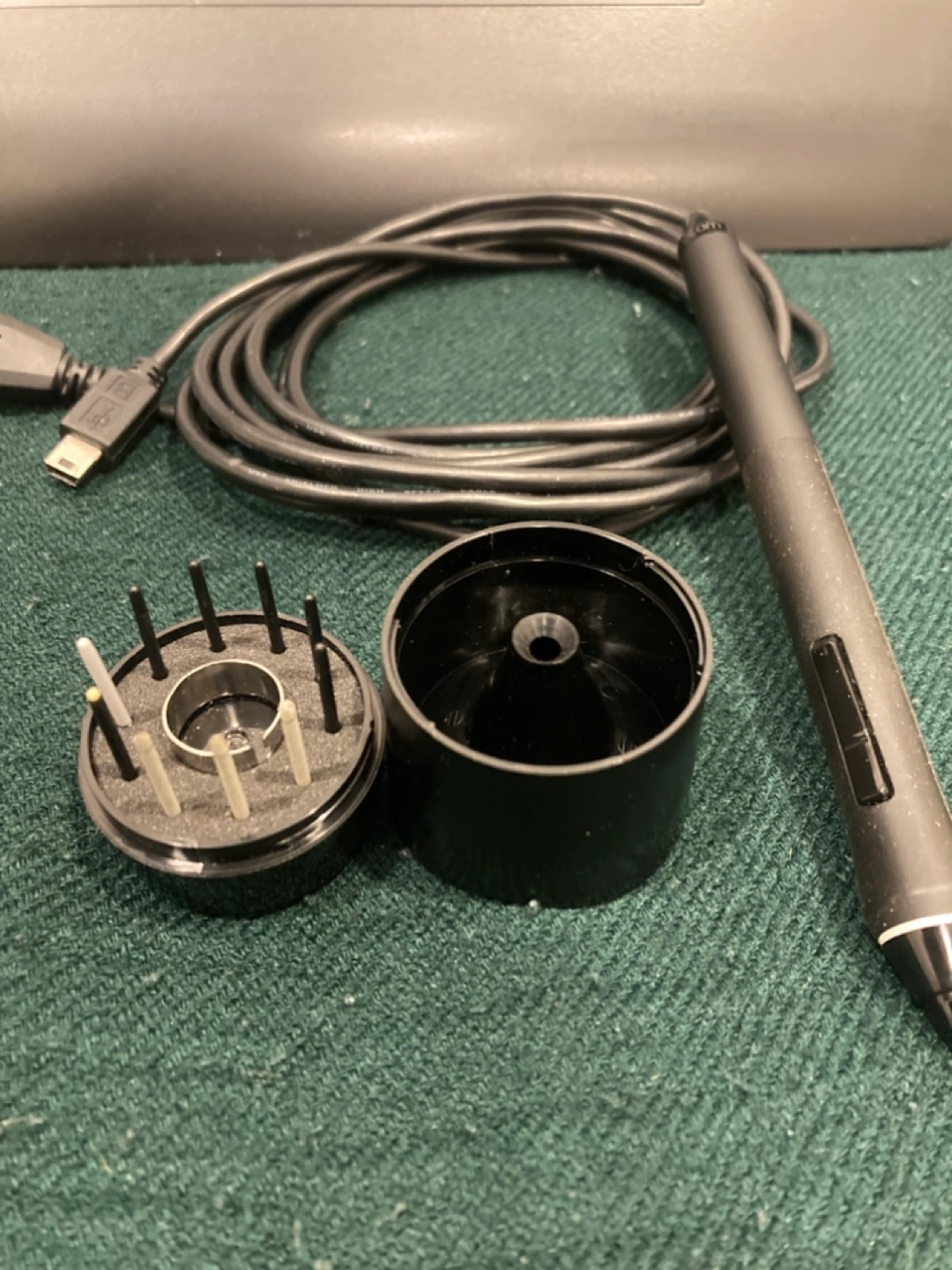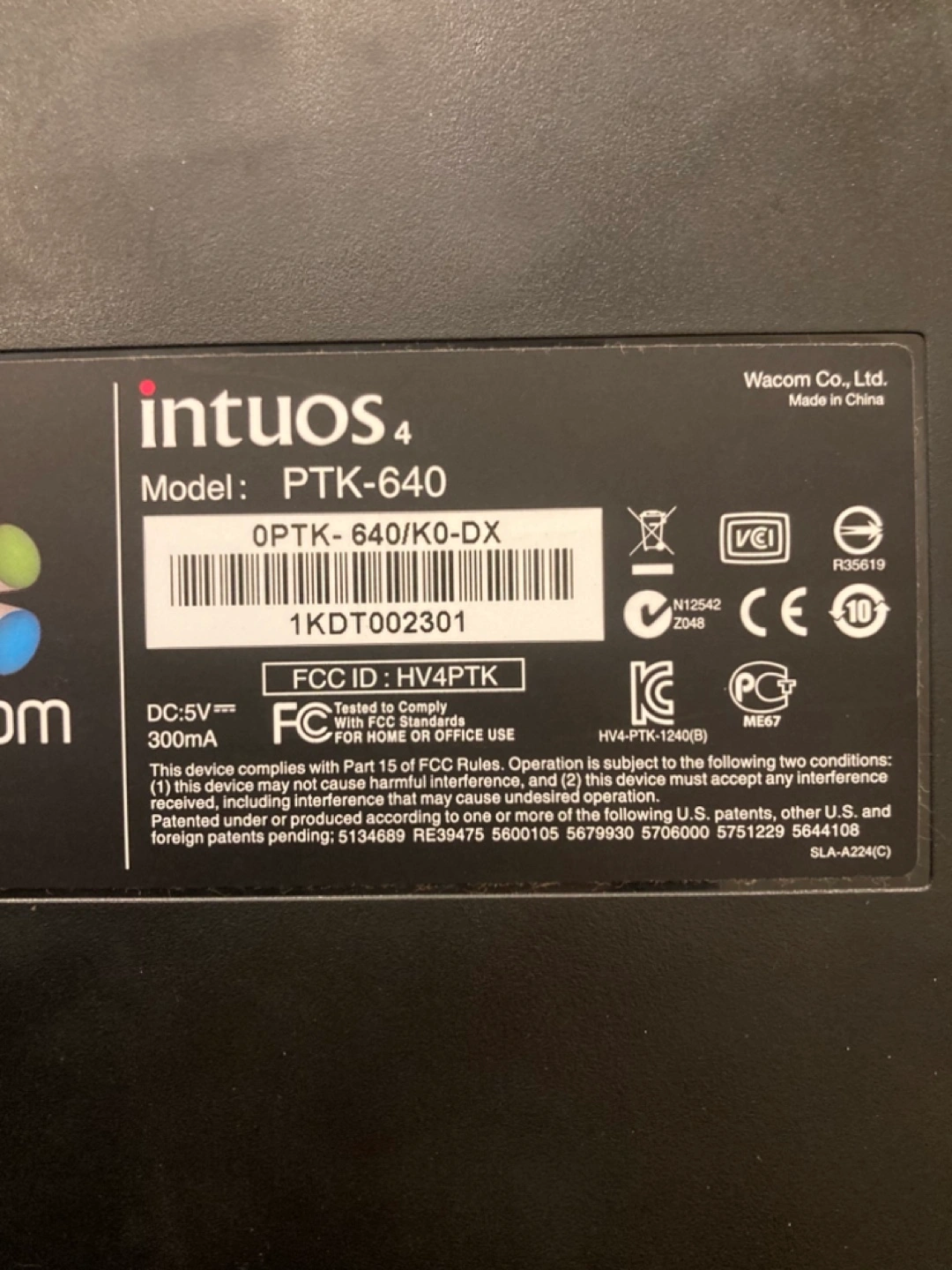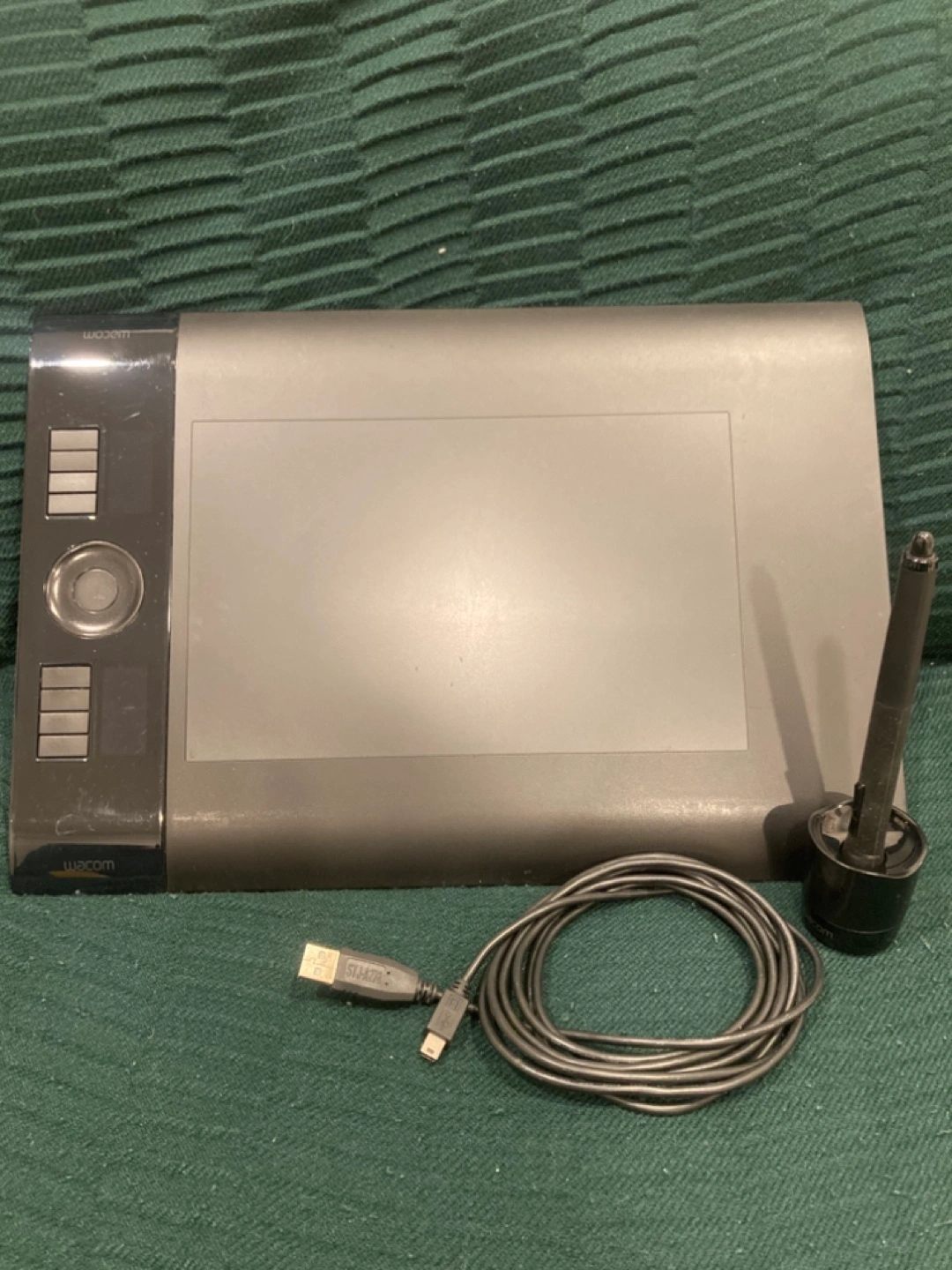 185Used Wacom Intuos4 PTK-640 graphics tablet. Includes pen, USB cable, and nibs. Excellent for digital art and design. Shows minor wear from use.