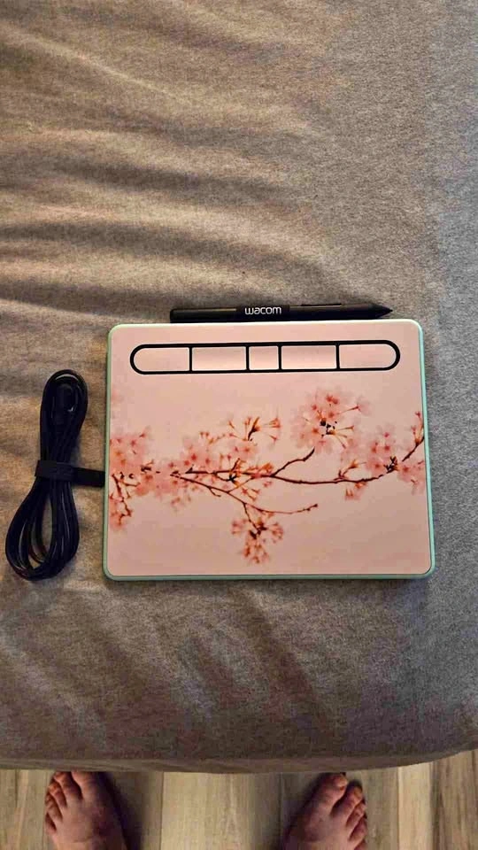 Old drawing tablet, not the pro edition, hardly used. Has a custom skin and comes with charging cable but it is also Bluetooth.