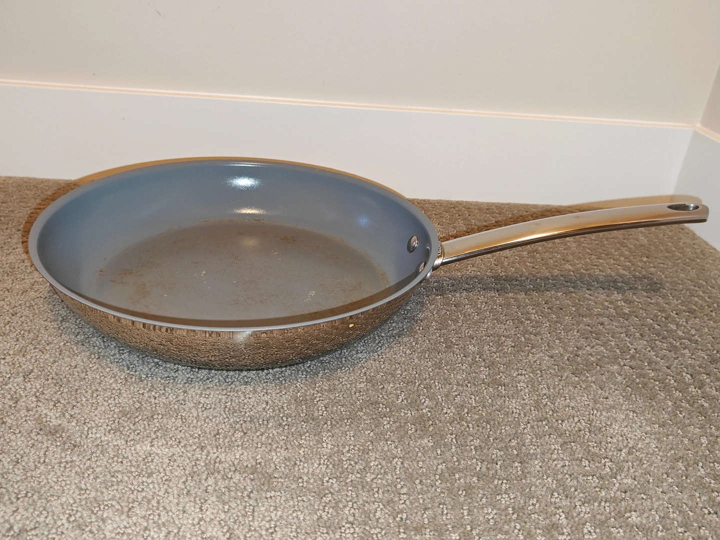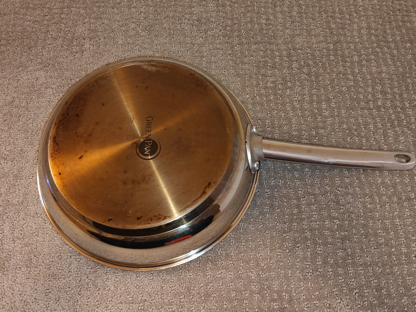 I am selling a GreenPan Ceramic - 11" Frying Pan Skillet / Cooking Fry Pan / Frypan in used, good condition. There is some sticking when the pan is used. The GreenPan is compatible with the following stovetops: Gas Stoves, Electric Coil, Induction, Halogen, and Ceramic.