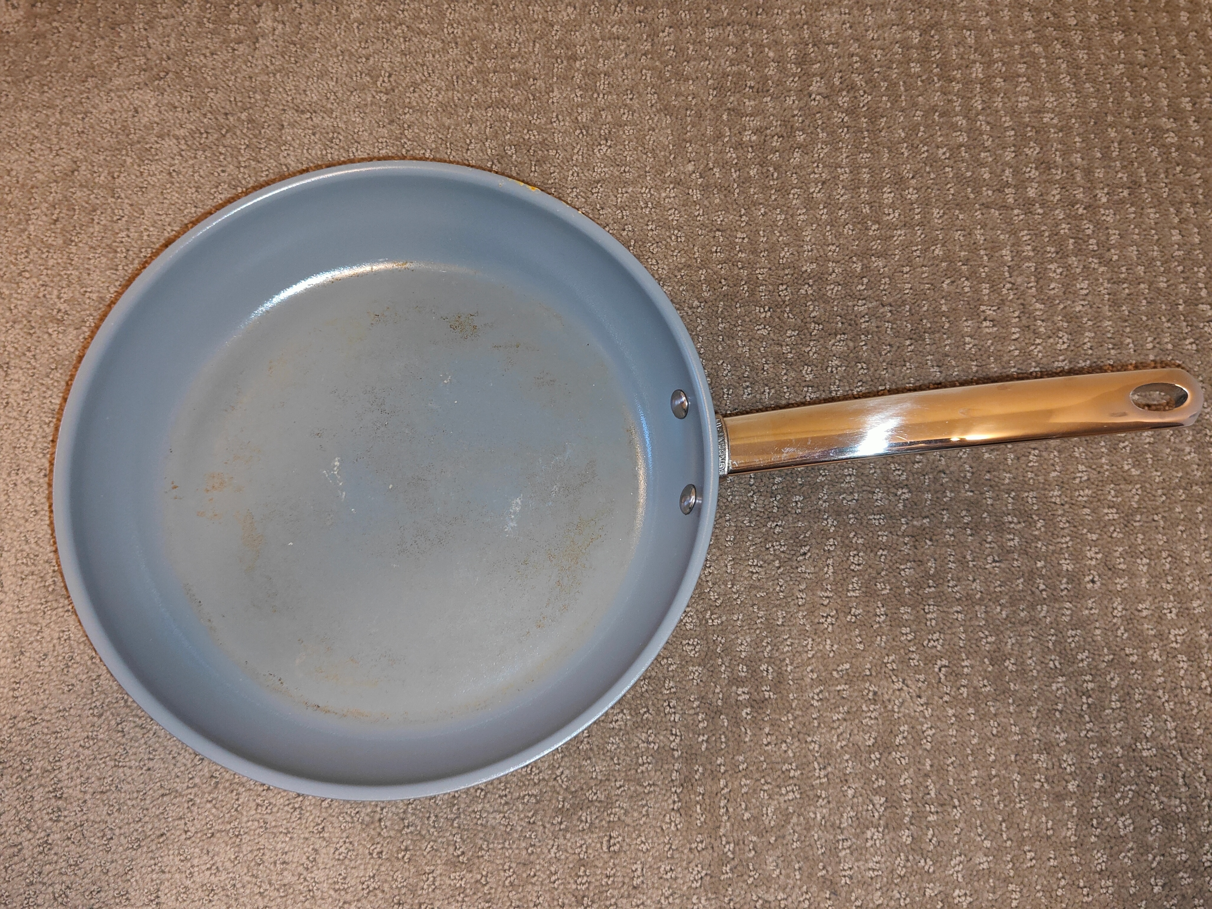 I am selling a GreenPan Ceramic - 11" Frying Pan Skillet / Cooking Fry Pan / Frypan in used, good condition. There is some sticking when the pan is used. The GreenPan is compatible with the following stovetops: Gas Stoves, Electric Coil, Induction, Halogen, and Ceramic.