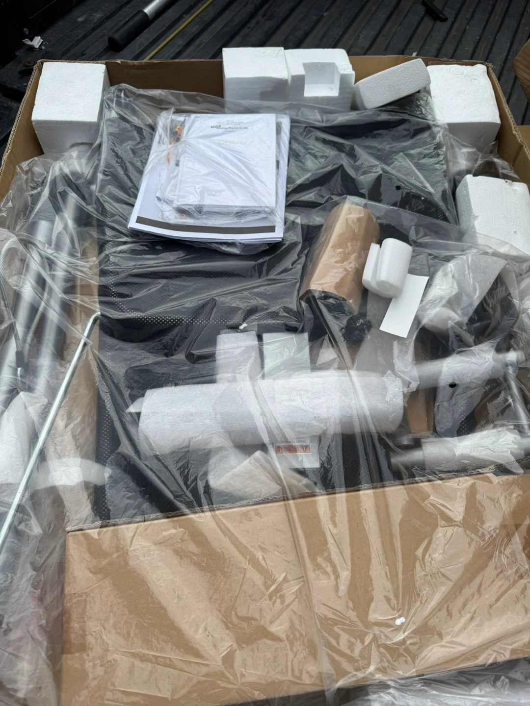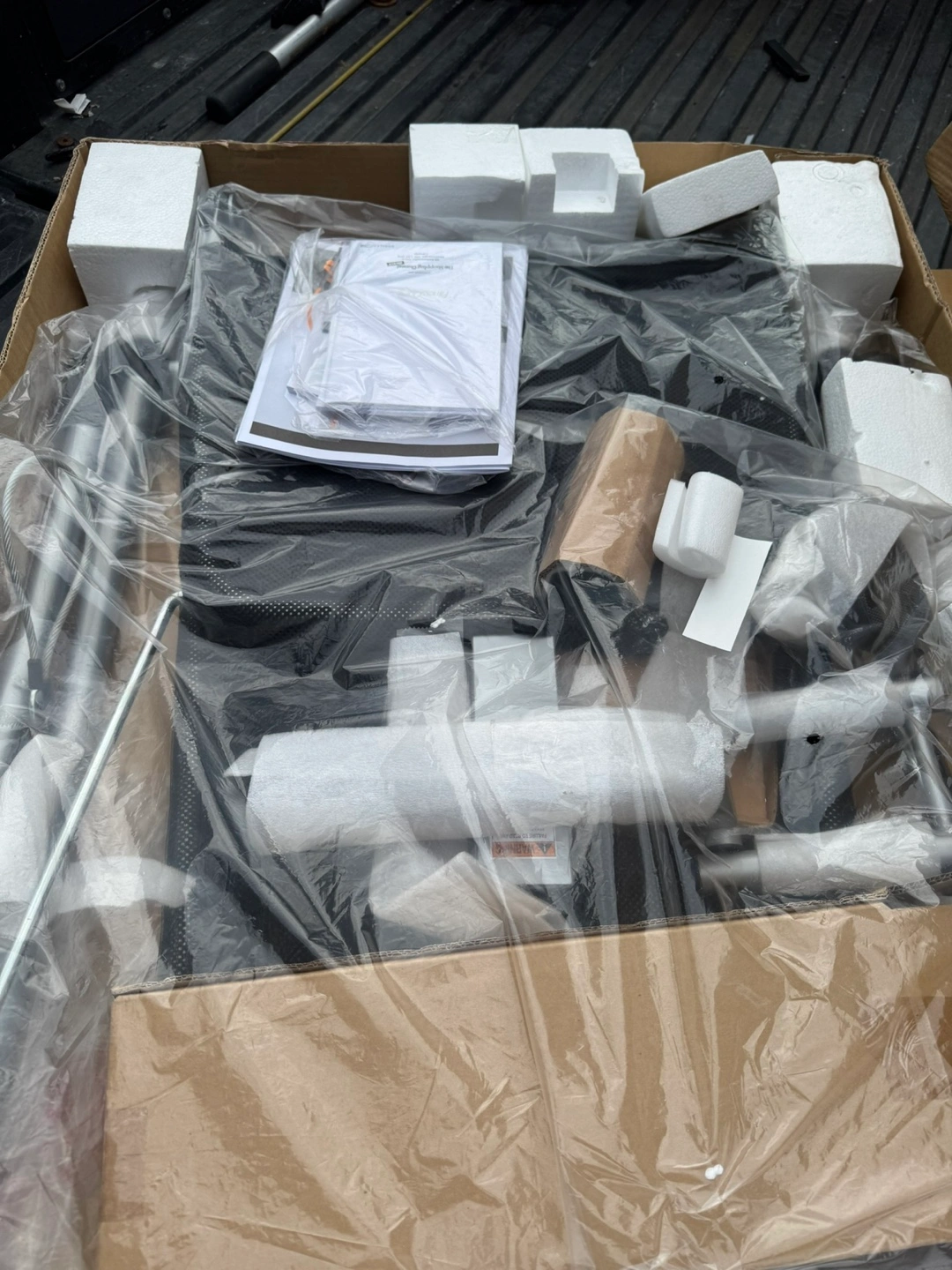 Inside its original packaging. Parts of the equipment protected by styrofoam and plastic wrap. Comes with the owner's manual. It could be a great way to get some exercise while feeling relaxed and focused on your body.