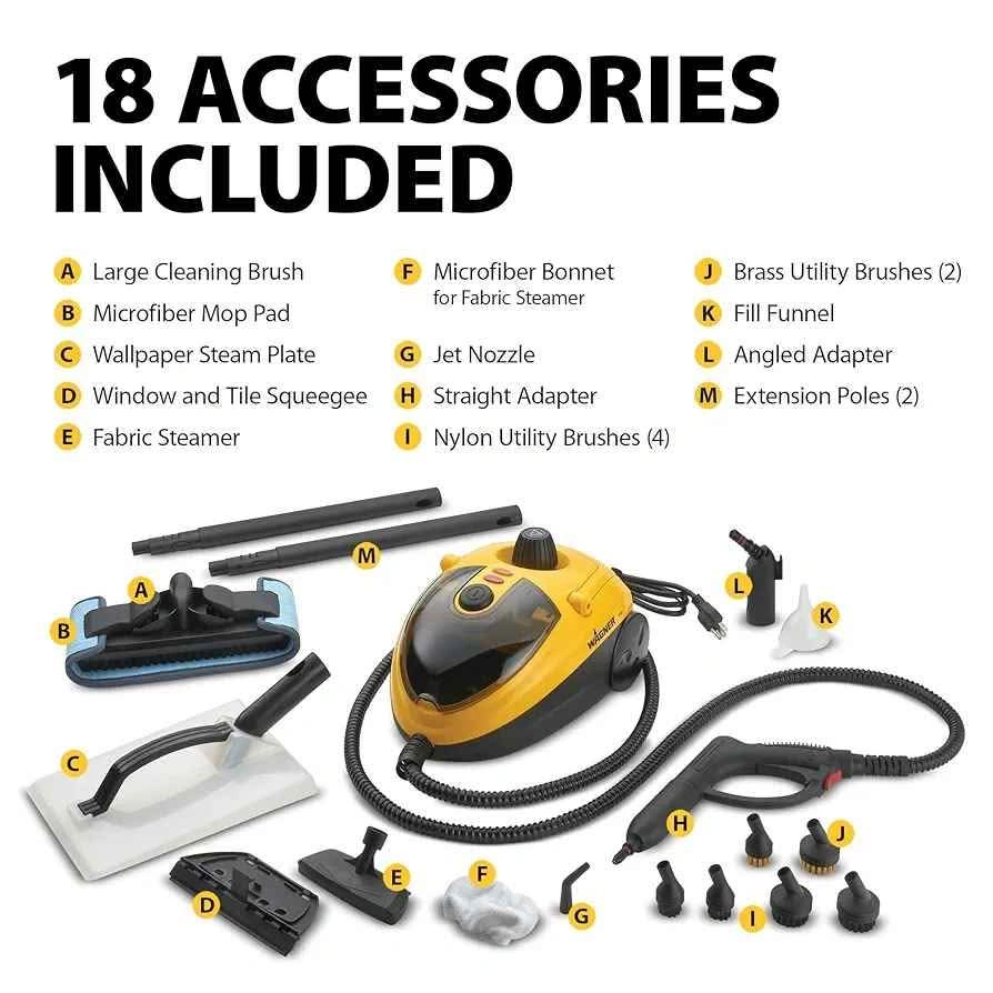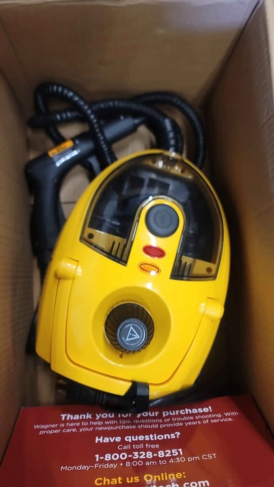 33The Wagner 915e Power Steamer is a multipurpose steamer that uses nothing but chemical-free steam to remove wallpaper and clean countless household surfaces without using chemicals. Includes 18 accessories and nozzles to loosen and dissolve dirt, grease and grime on floors and carpet, grout, kitchen countertops, appliances and more. Great for wallpaper removal with no harsh chemicals needed. The 8 ft. steam hose provides great length for reaching tall walls while stripping wallpaper. The steamer holds up to 40 oz. of water and heats up to 212°F (100°C) in under 9 minutes. On a full tank, it provides 40 continuous minutes of cleaning power.