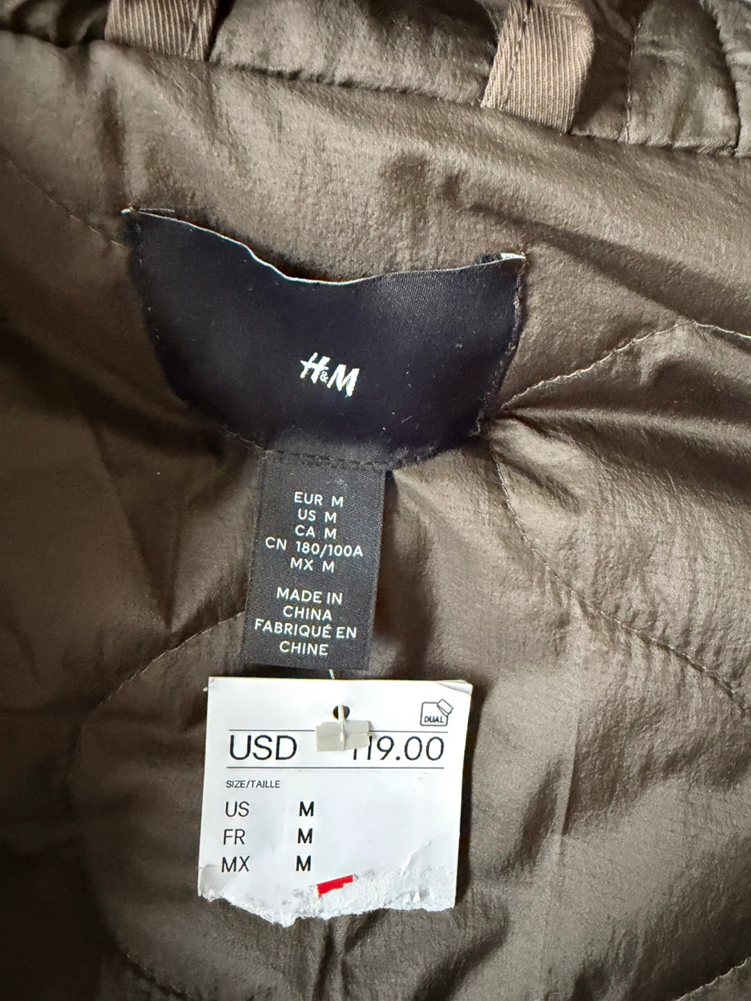 Selling a gently used H&M hooded parka in a versatile brown color! It's a size M and features a comfortable, relaxed fit. Originally bought for $19, this parka is perfect for layering during cooler weather. It has a hood and several pockets, making it both stylish and practical!