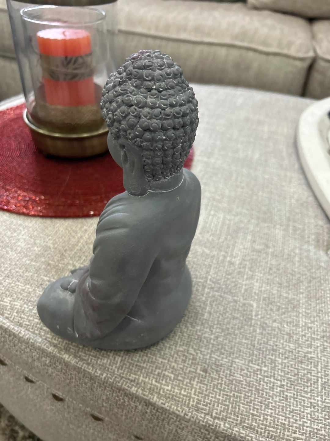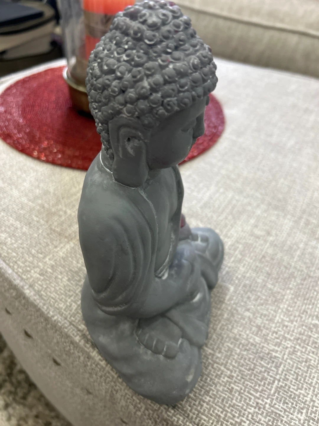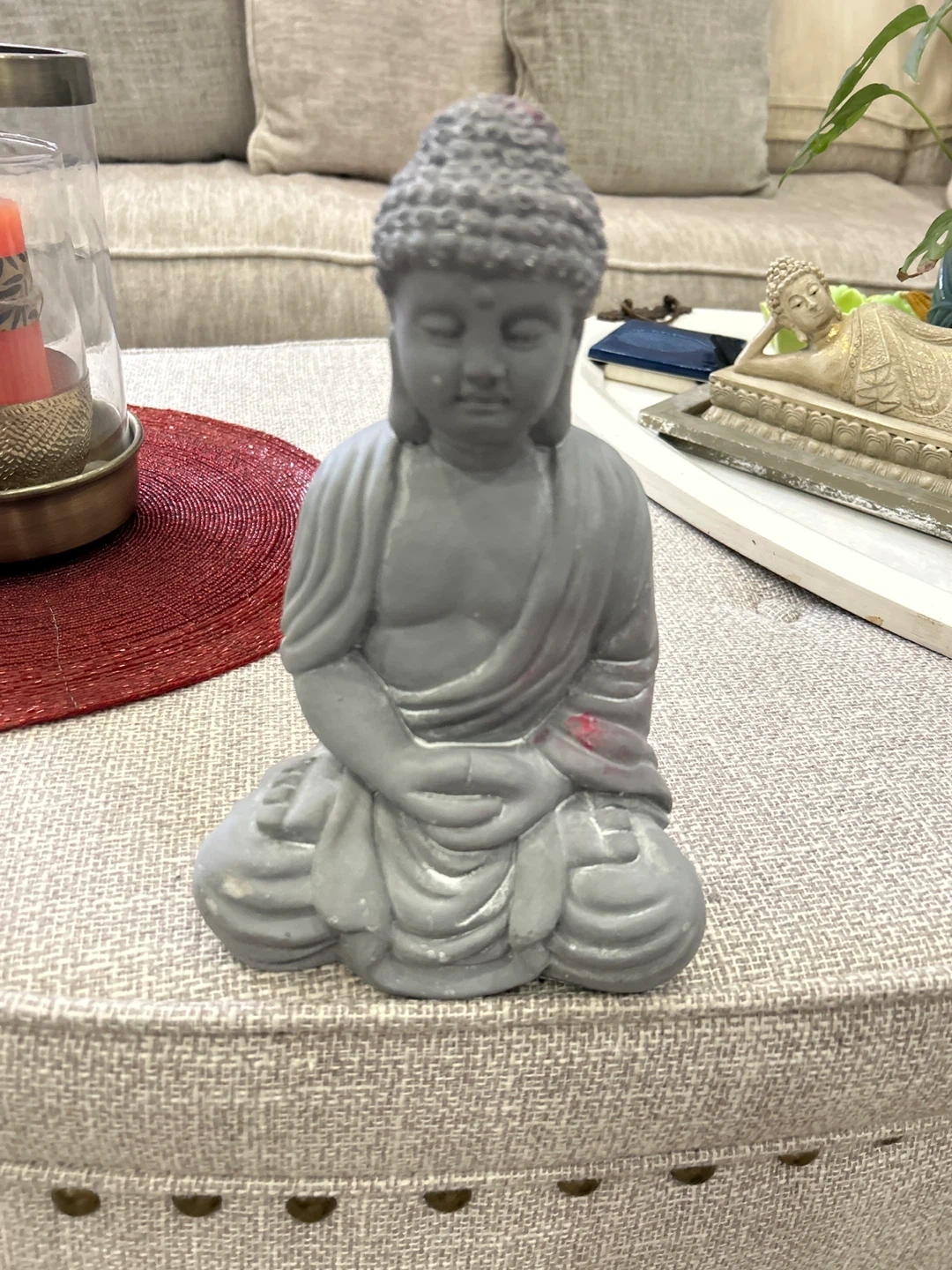 This grey sitting Buddha figurine adds a peaceful touch to any space. Made of durable material, it's a calming decorative piece. Great for enhancing a serene home environment.