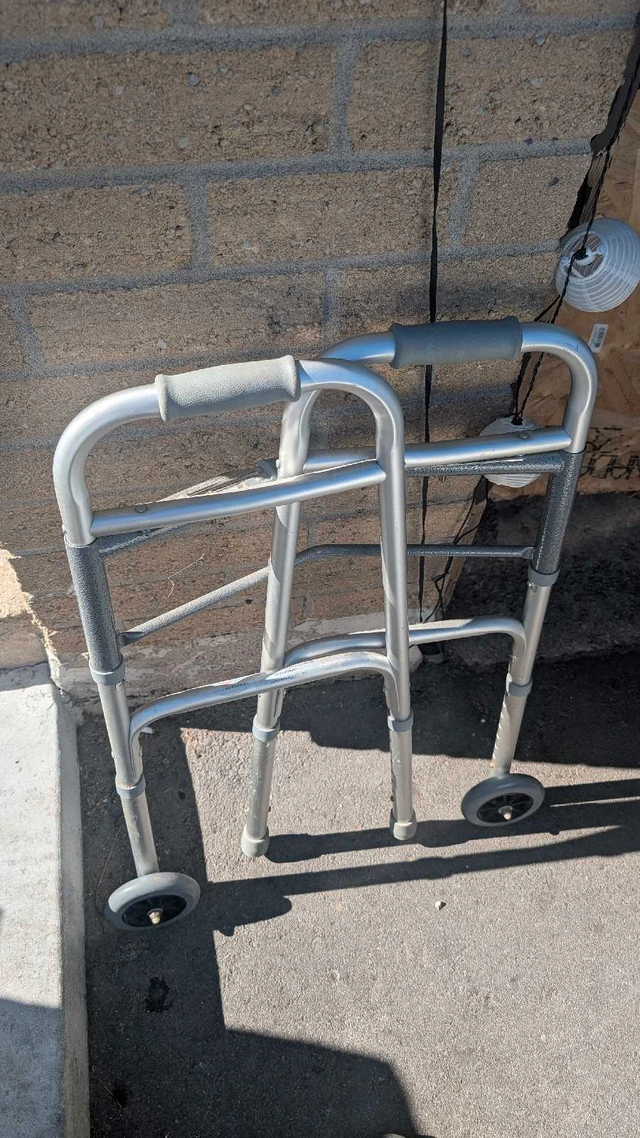 60This used walker offers sturdy support with its durable aluminum frame and convenient front wheels, making mobility easier. There are marks from regular use on the frame. Key Features: * Durable aluminum frame * Front wheels for smooth movement * Folds for easy storage and transport Walking aids are so helpful, they are like having a personal assistant that helps you stand. Please note that if this ad is still up, the walker is available! Based on similar walkers listed on Kijiji, a reasonable price for this item is $30.