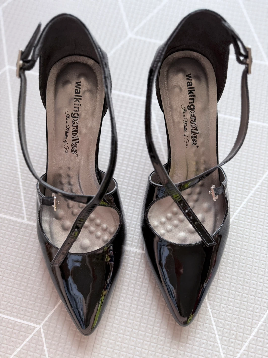 146These are a pair of Walking Cradles heels in black. They're a size 8 W. There are some signs of wear on the soles, but otherwise they're in good condition!