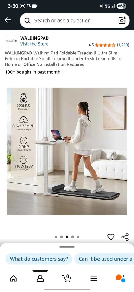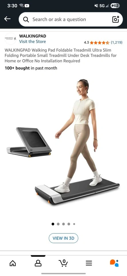 10Brand new never opened Walking Pad. Bought it from Amazon but does not fit the space. I paid $360.47 on sale on Amazon, and can share the invoice. You will be saving $110! Currently its $349+tax on Amazon. Ultra-thin Folding Design: walking pad P1 is designed with ultra-thin high-strength aluminum alloy frame and professional hinged folding design, which makes the product only 32.5*21.5*5inch in size after folding, and it can be easily hidden in the sofa, table, and under the bed, which is perfect for integrating into the modern home space. Smart Gravity Foot Sensing Speed Control:To avoid fall down risk on the speed walking pad, this foldable treadmill P1 built with high sensitive gravity sensors to support speed control, you will easy to feel the front accelerate area, middle uniform speed area and back decelerate area, and the whole process is automatically controlled by your foot position. Remote Control With High-Definition Display: walking pad P1 wireless remote control, equipped with a high-definition display, the use of the remote control not only can control the treadmill, but also through the remote control display to view the exercise time, speed, distance, calories, etc., the speed accuracy of +/- 0.5MPH, the speed range of 0.5~3.75MPH, this walking pad not only can be used for walking, but also can be widely used for jogging.