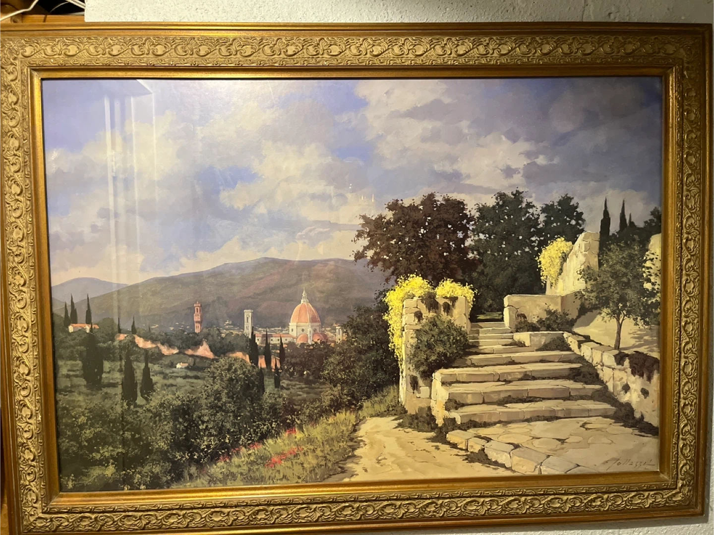 113Beautiful 42” x 30” framed picture of Florence Italy In a decorative wood frame with glass protecting the picture.