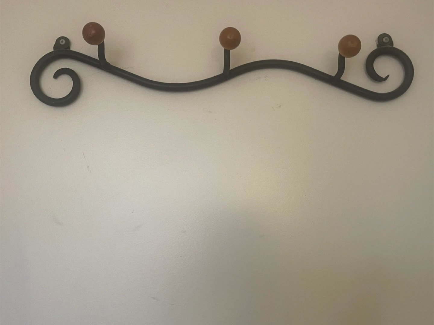 Selling a wall-mounted coat rack featuring a stylish, wavy design and three wooden knob hooks. It's perfect for adding a touch of rustic charm to your entryway or bedroom and keeping your coats and accessories organized