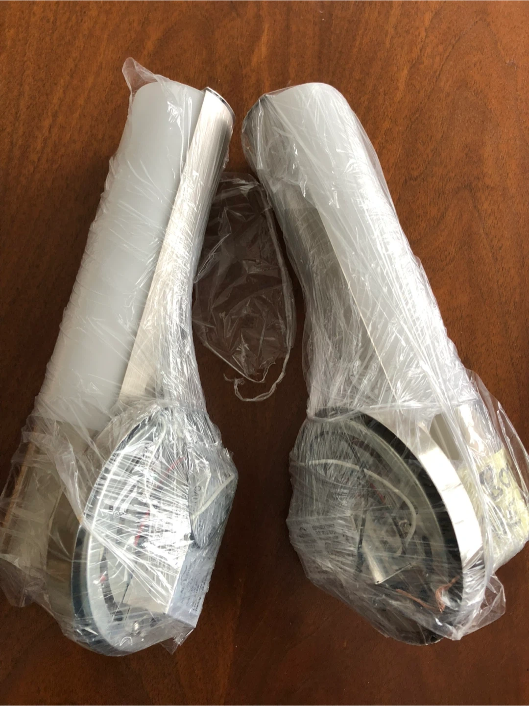 247Pair of New condition wall sconces; these have beautiful glass shades. Hardwired.