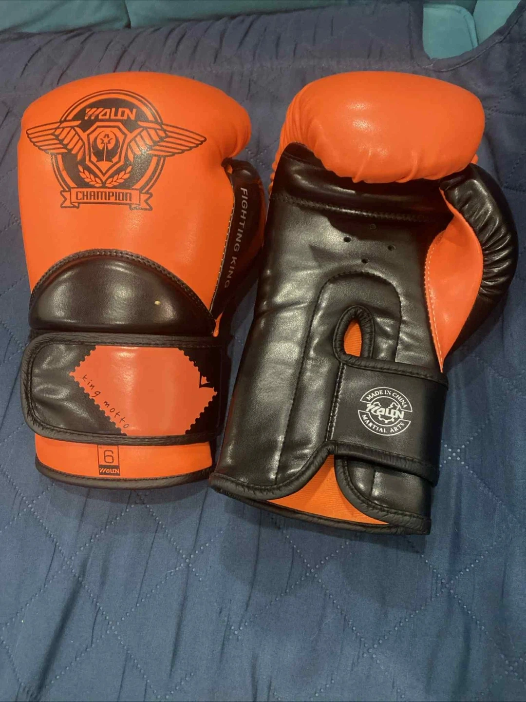 15Selling a pair of Walon Champion boxing gloves in size 6. They are orange and black. Perfect for martial arts training!