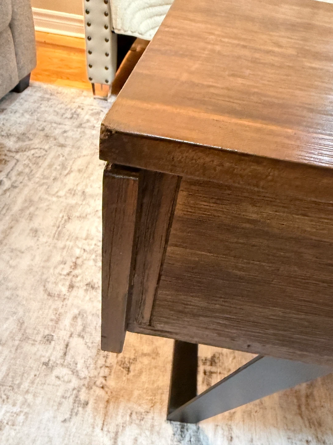 Very sturdy-Heavy, well-built table with stylish industrial metal legs