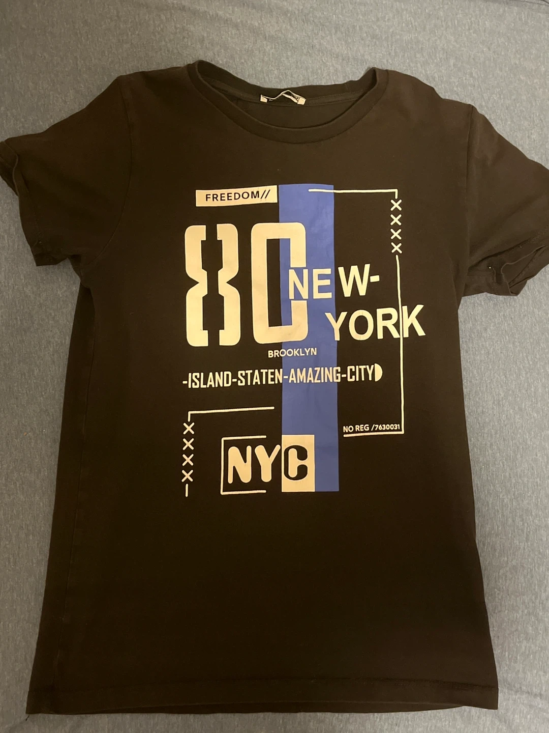 0Selling a Wanex black T-shirt with a cool design! The size is 158, perfect for kids or teens. It features a '80 New York' print. It's in great condition and ready for a new home