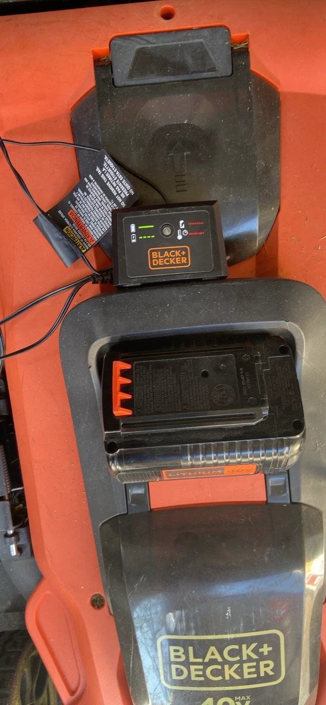 This is a Black+Decker 40V cordless lawn mower. It's orange and black. Includes the battery and charger. Great for keeping your lawn tidy! $85