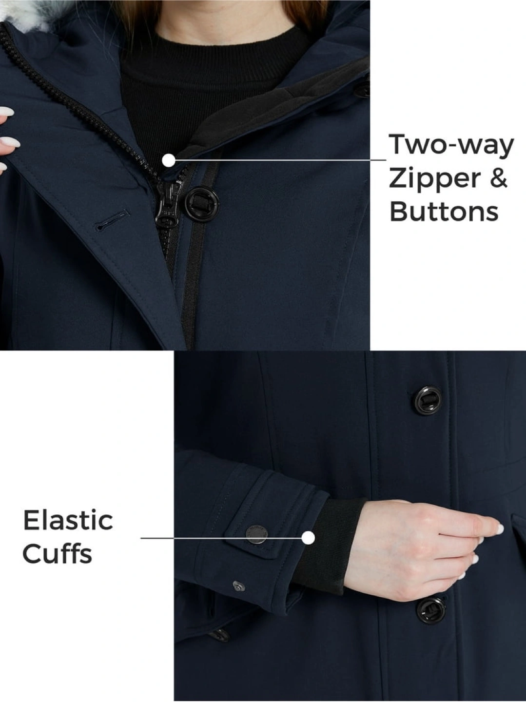 792This Wantdo winter coat is perfect for staying warm during those cold Canadian months! It features a detachable faux fur-lined hood, a two-way zipper with buttons, and elastic cuffs to keep the wind out. There's also a waist drawstring for a more fitted look. It's a stylish and practical choice for winter! Brand new with tags Pickup Brampton or downtown Toronto Stay warm and stylish with this navy parka featuring a luxurious faux fur hood. Perfect for chilly days. Details: Warm & Cozy Parka Jacket - Made with a pure durable shell, fluffy high quality insulation, adjustable hood and fleece-lined hand pockets that shield against cold air as a thicken snow jacket Protects Against Wind & Water - This winter coat for women is designed with full front zippers, a button placket and adjustable features, you can customize the fit of your hood, hem. Get yourself more stylish with the hooded puffer jacket on. Fashion Jacket That Lasts - A truly long-lasting winter jacket for women, this ladies' jacket features a sturdy shell, heavy duty zipper, and stitching that can withstand friction and pulling from trudging up mountains Pockets for Everyone - Keep your tablets, sunglasses, wallet, keys, phone, passport, IDs, and gear with you at all times! This padded puffy jacket features several pockets of varying sizes Versatile Style - This puffer coat with removable hood feature an adjustable hem and waist. Tighten the waist drawstring of the women's parka for a better, figure-flattering fit. Easy to carry for your different daily activities Jacket 📦