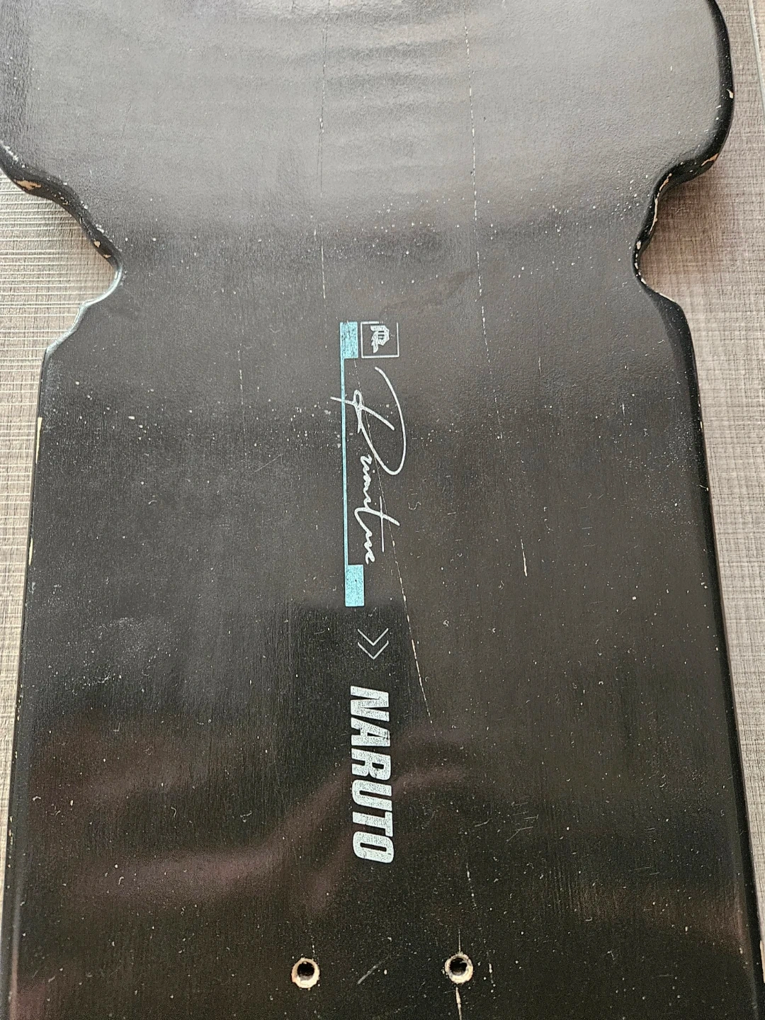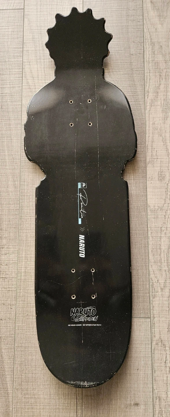 Selling a used Primitive Naruto skateboard deck featuring a cool design. This board is still in good shape for cruising around or displaying as a collector's item. I've priced it fairly, considering its condition and the rarity of the design.