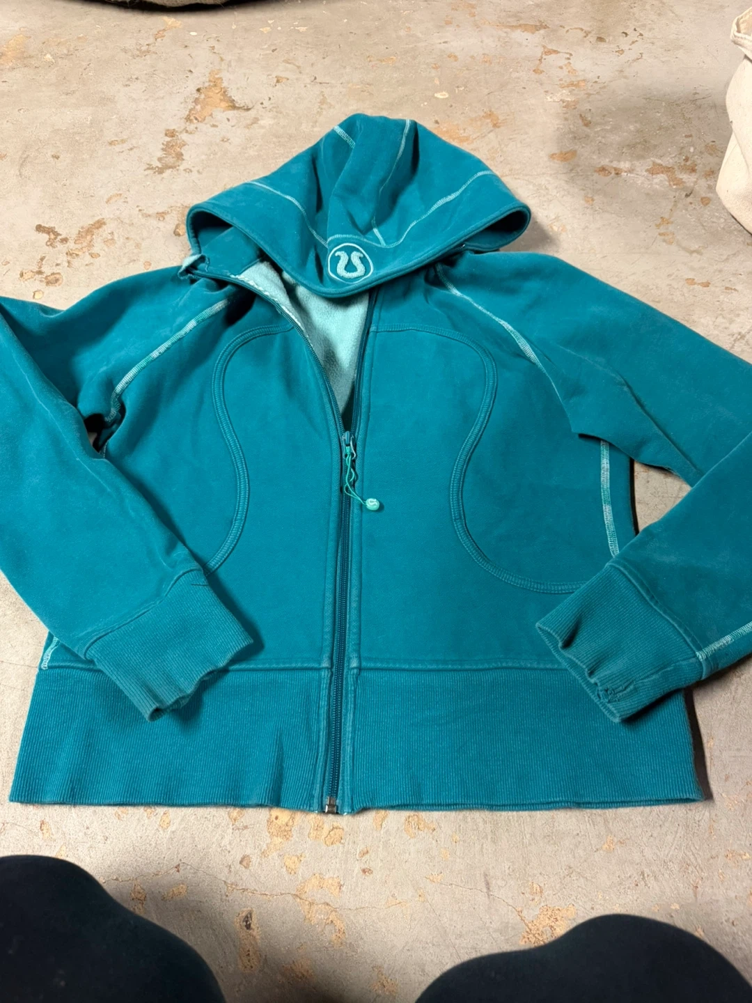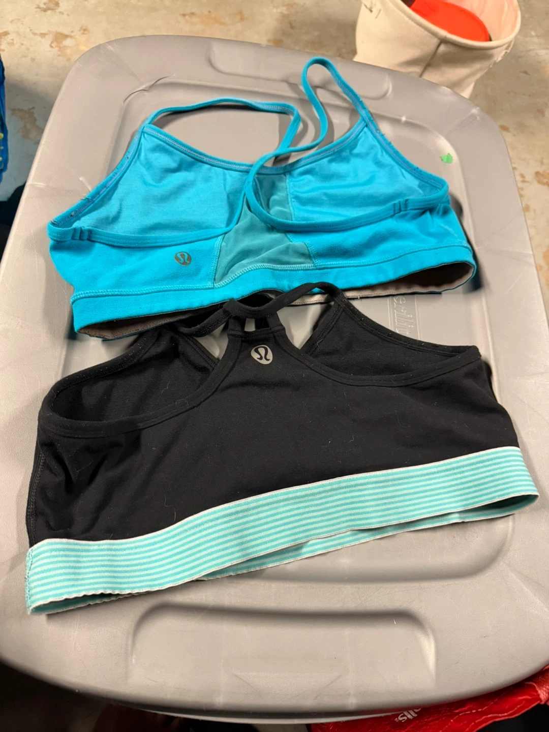 Selling a collection of Lululemon activewear! There are a couple of sports bras in blue and black, as well as pullovers in pink and teal. Great for workouts or everyday wear!