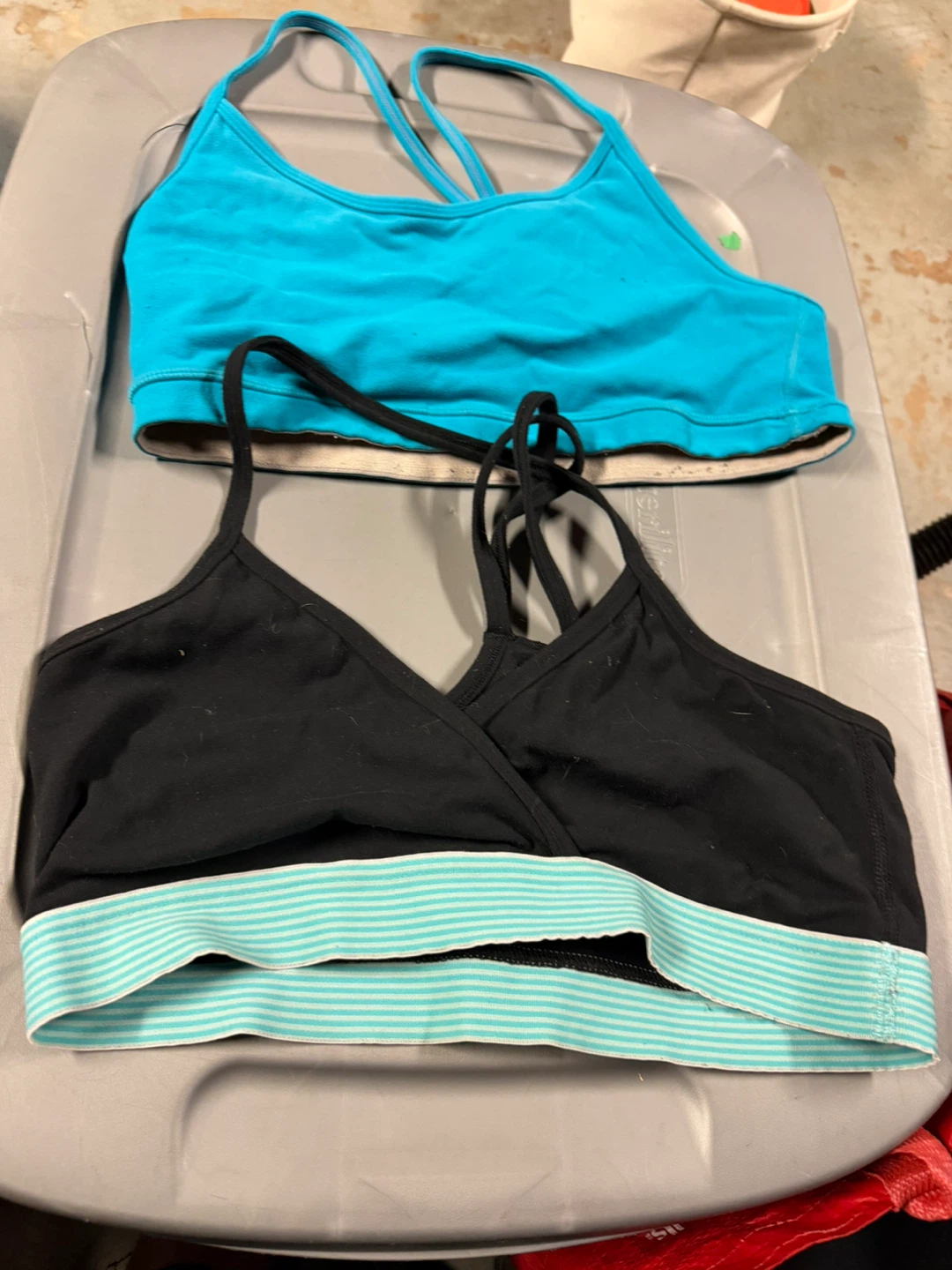 Selling a collection of Lululemon activewear! There are a couple of sports bras in blue and black, as well as pullovers in pink and teal. Great for workouts or everyday wear!