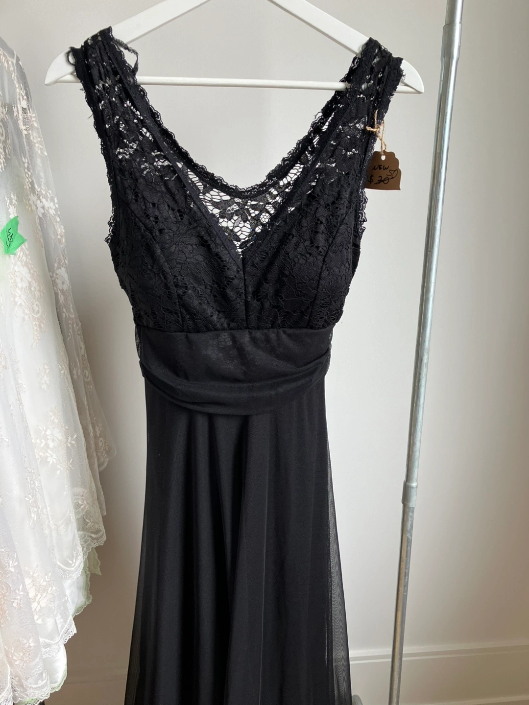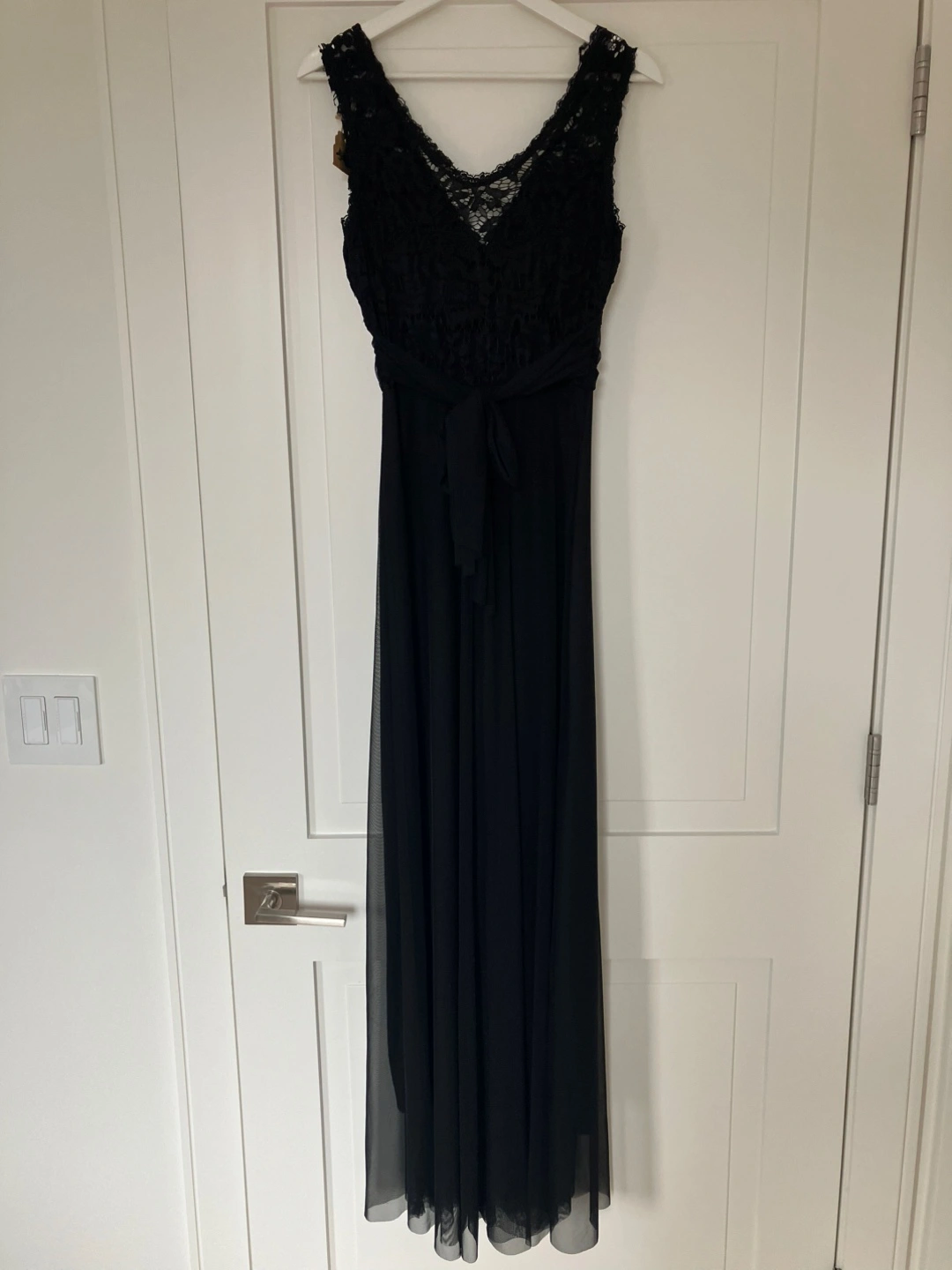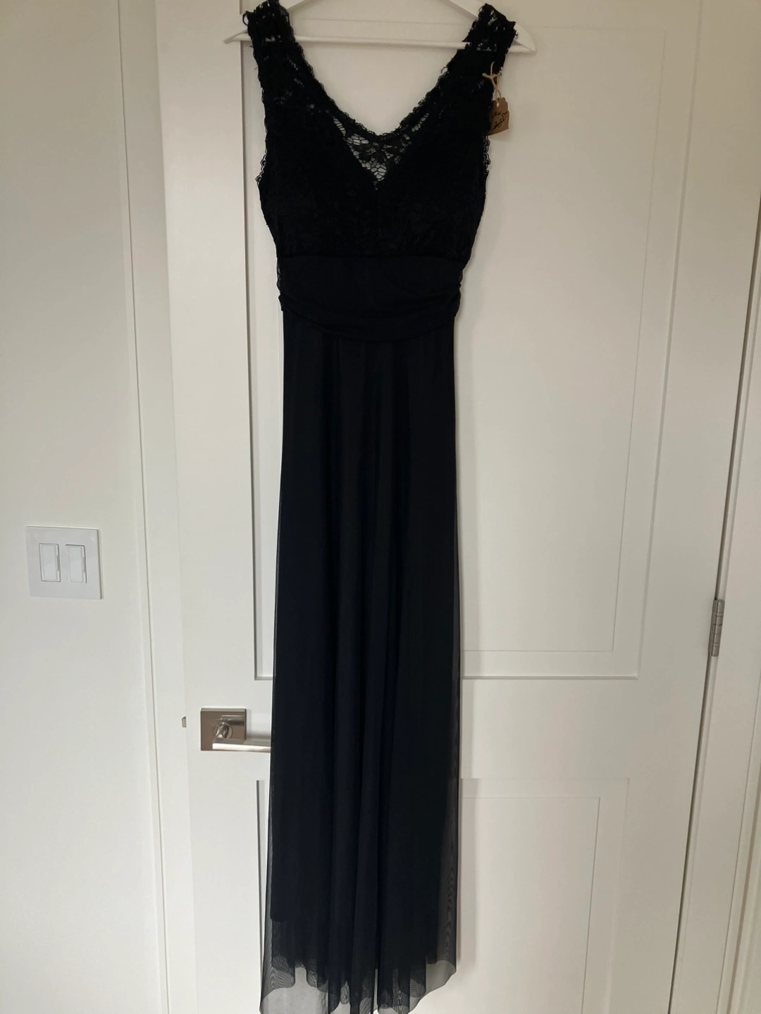 Selling a gorgeous black lace maxi dress! Brand new. Perfect for a special occasion or a night out. The dress features a delicate lace bodice with sewn in cups and a flowing maxi skirt. It has a flattering silhouette and is super comfortable to wear. Made in Italy. Size Small/Medium.