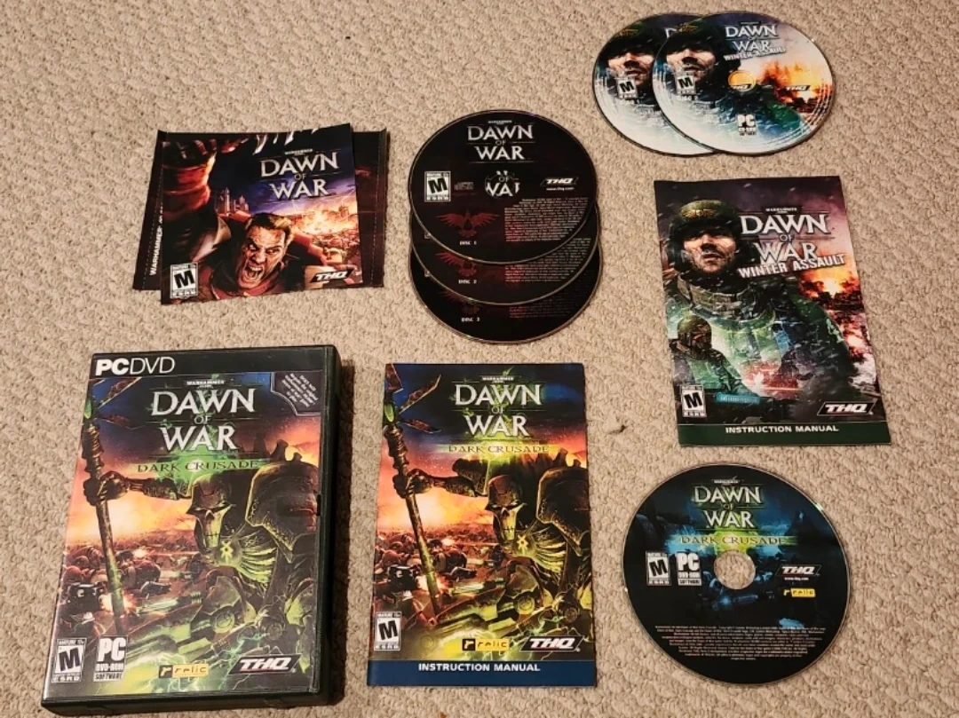 10Selling a collection of Warhammer Dawn of War PC games! Includes Dawn of War, Dark Crusade and Winter Assault, along with instruction manuals and game discs. All in good shape. Best bought all together!