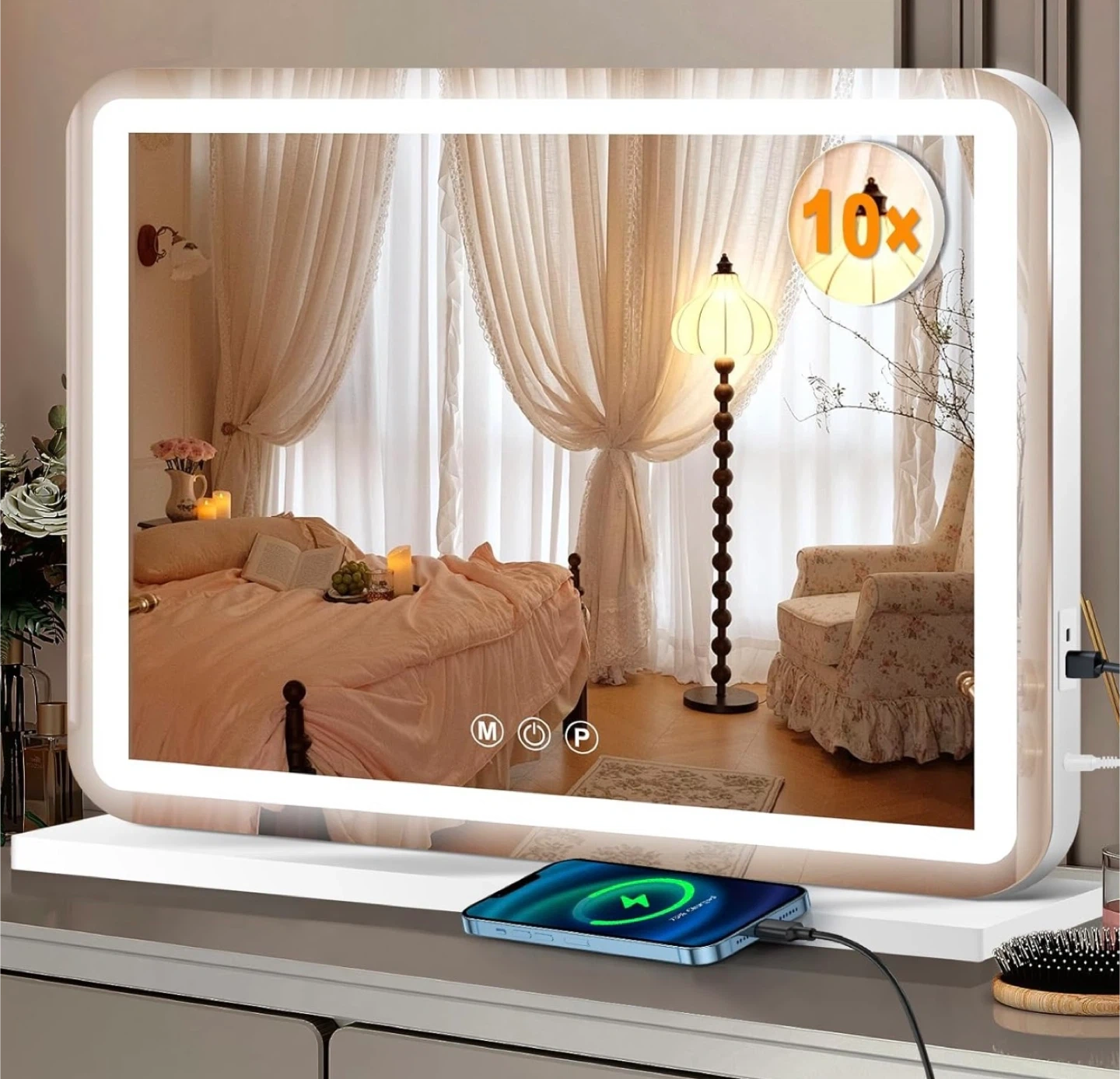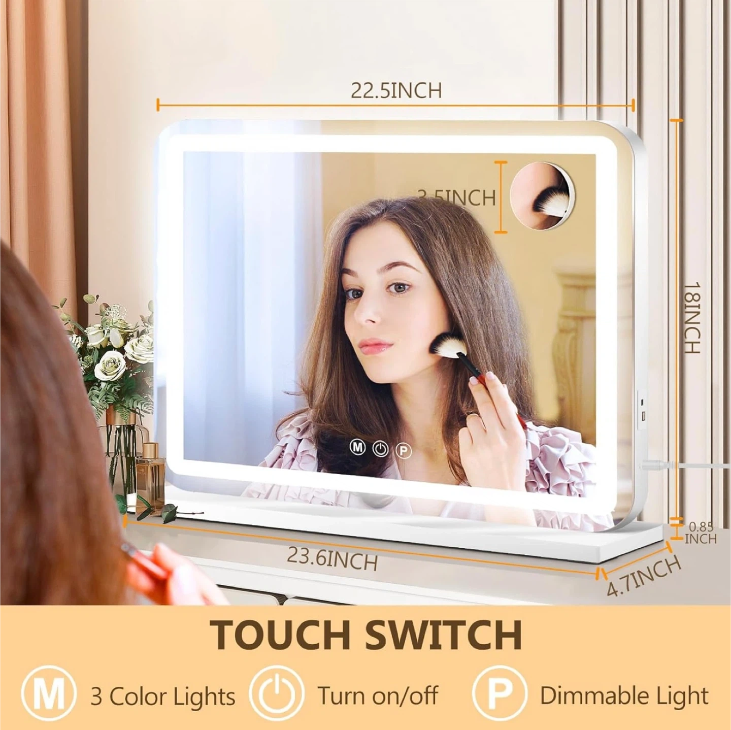 Illuminate your beauty routine with this brand new, in-box 23" x 18" vanity mirror, featuring adjustable LED lights. This mirror offers the perfect lighting for makeup application and skincare.