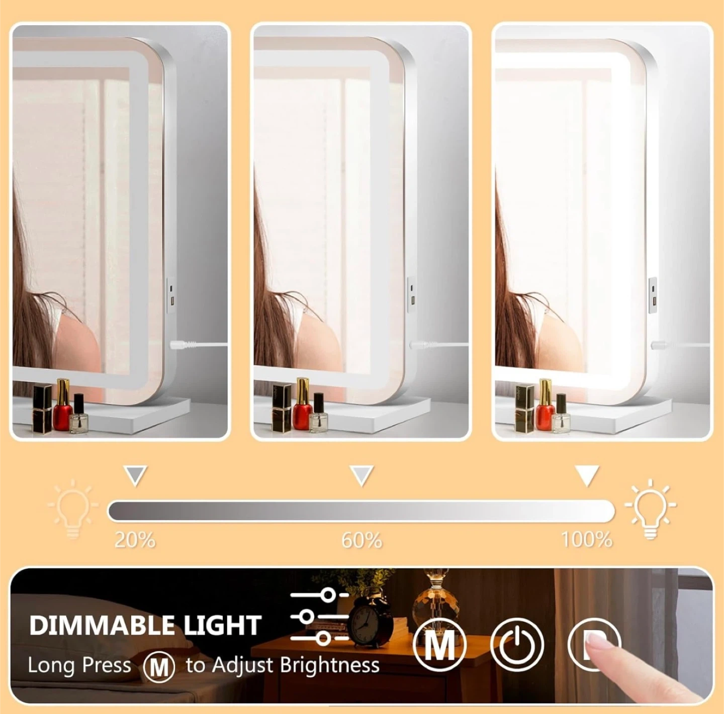 Illuminate your beauty routine with this brand new, in-box 23" x 18" vanity mirror, featuring adjustable LED lights. This mirror offers the perfect lighting for makeup application and skincare.