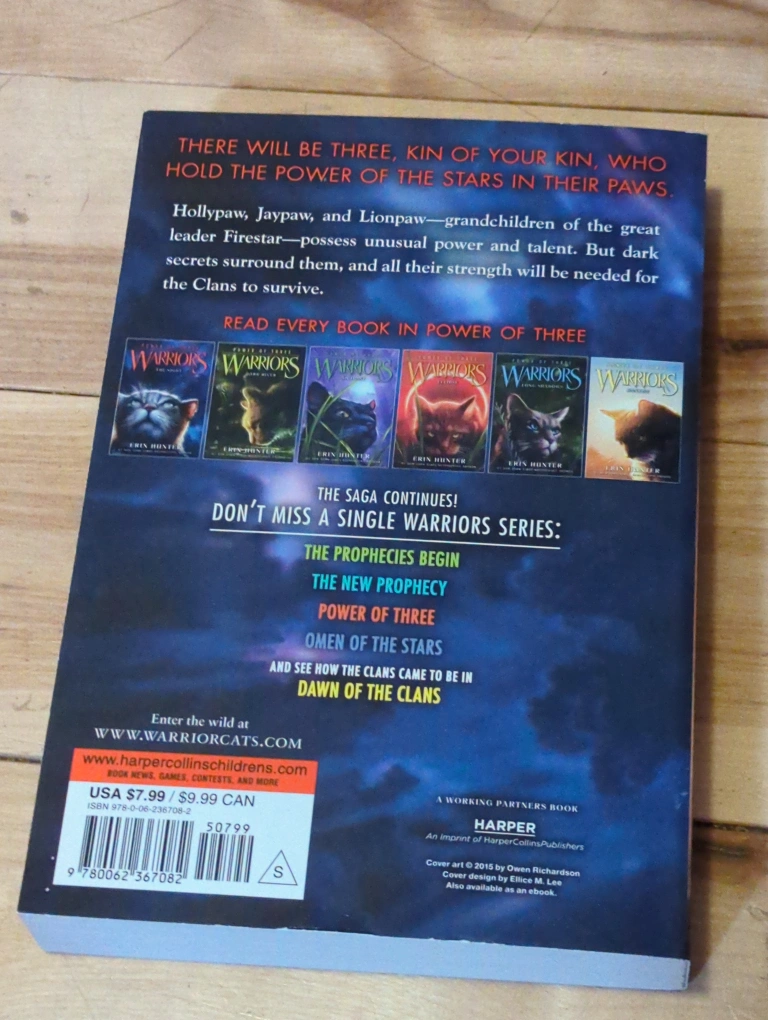 Selling the first book in the Warriors: Power of Three series, "The Sight" by Erin Hunter! It's a great read for anyone who loves adventure and animal stories.