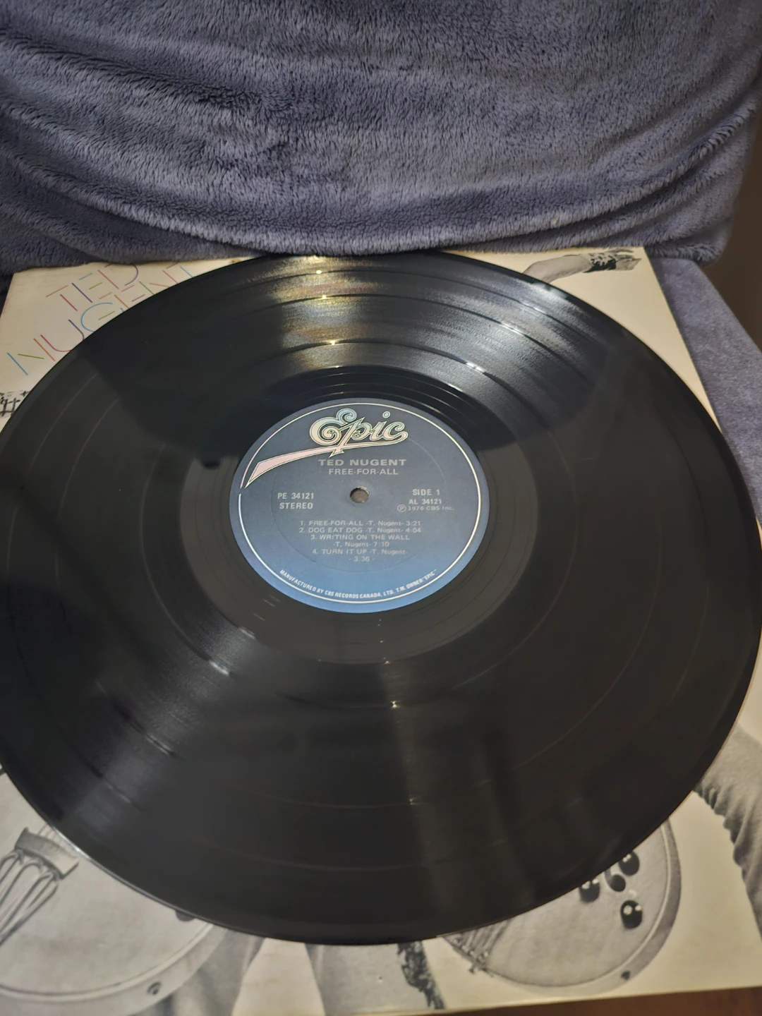 Ted Nugent's 1976 album 'Free-For-All'. This is a vinyl LP record. Manufactured in Canada by CBS Records Canada Ltd.