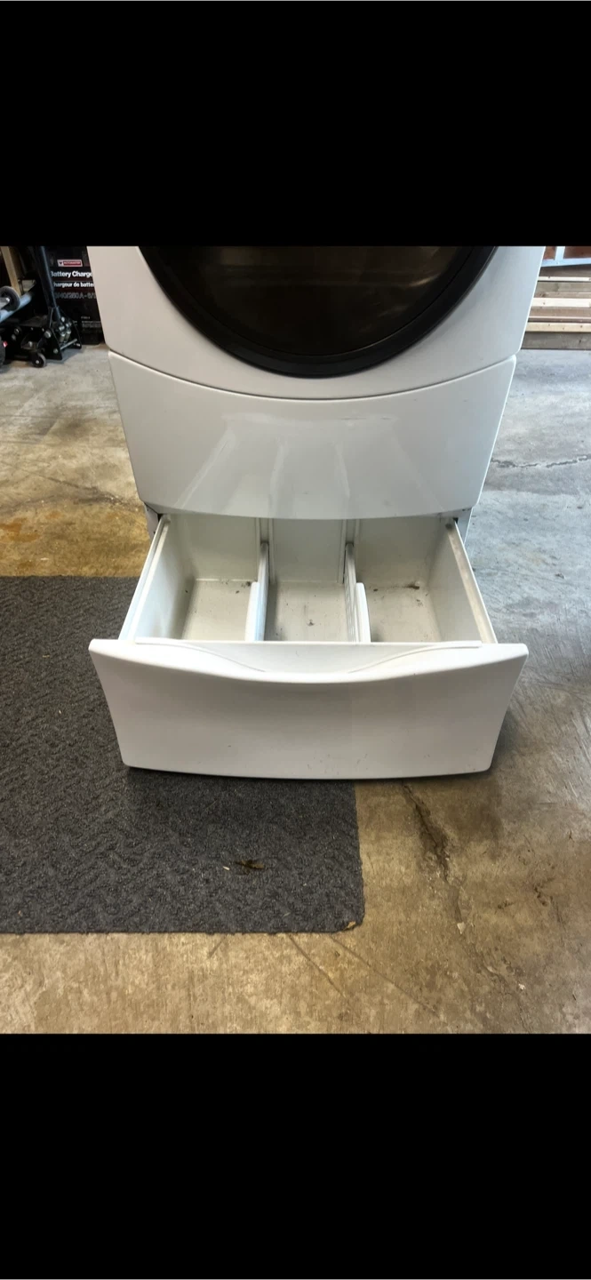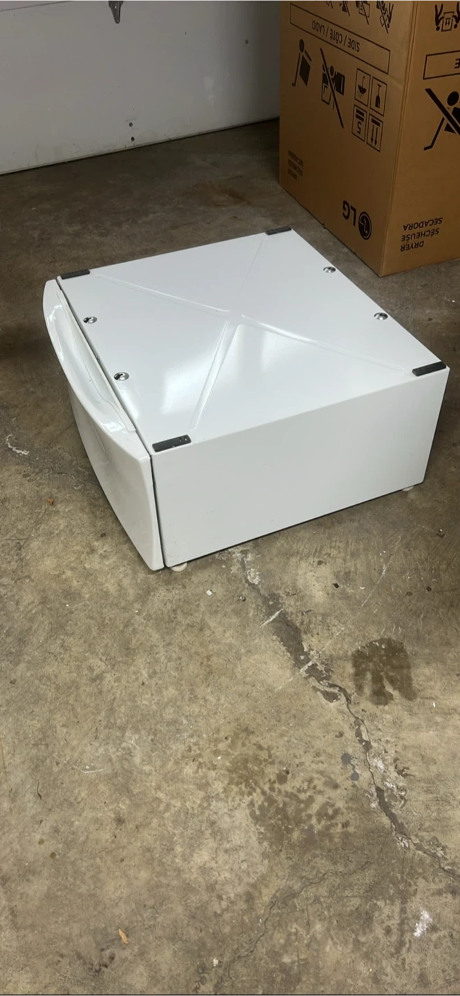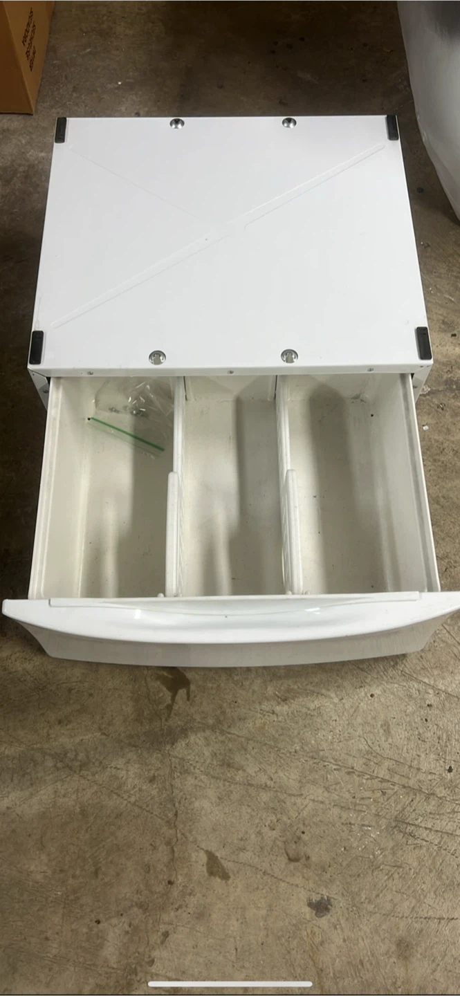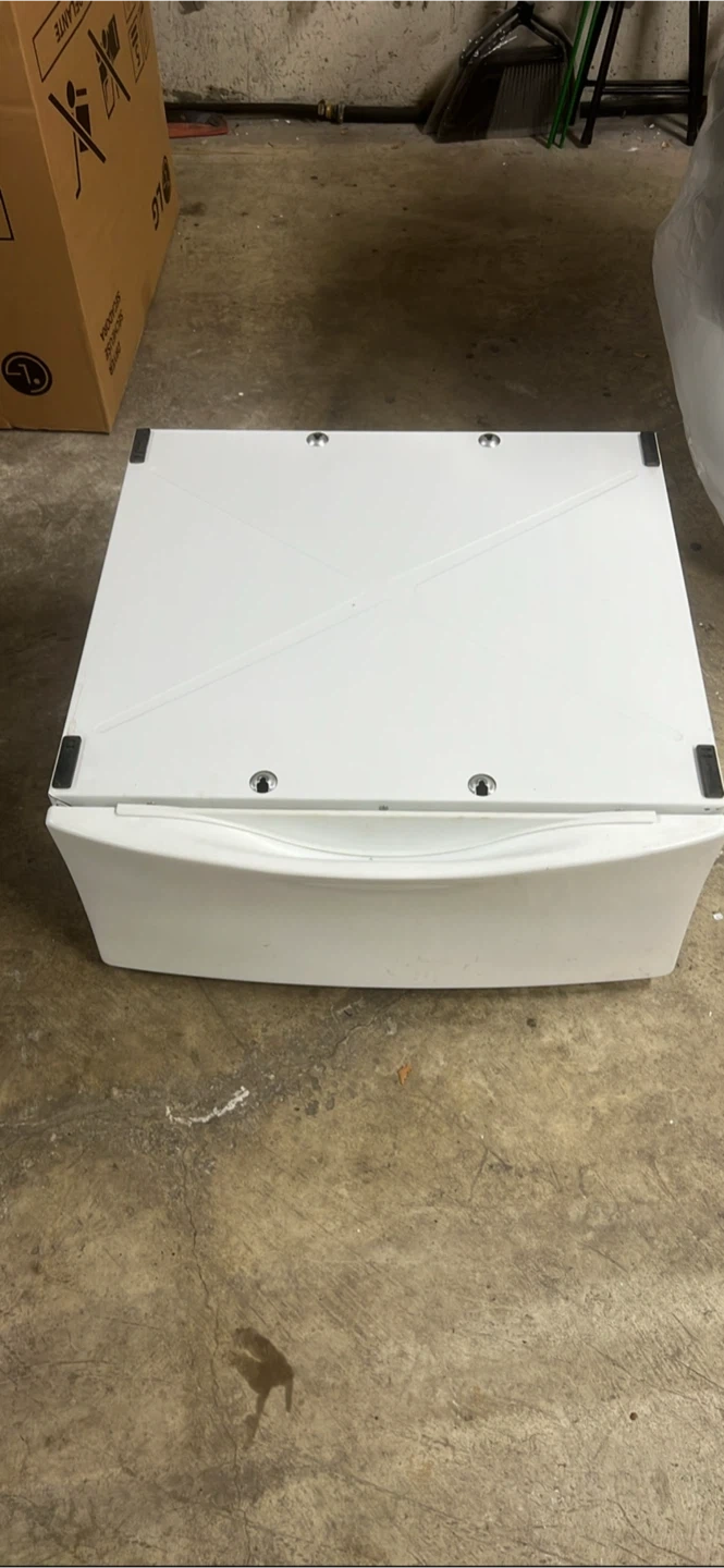 Washer/dryer pedestal 27 inches wide, 24 inches depth, 12 inches height This pedestal came off a “Kenmore Elite HE3” dryer