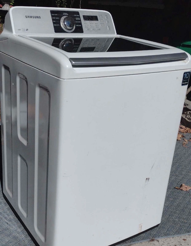 Samsung Washing machine Model WA422PRHDWR Top Load Washer 27 in, 4.8 Cu.Ft, 9 Wash Cycles 5 Options 5 Temperatures, Diamond Drum Design, Delay Start, Automatic Dispensers for Fabric, Bleach and Softner Liquids. Works like new. Wanted stainless steel
