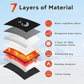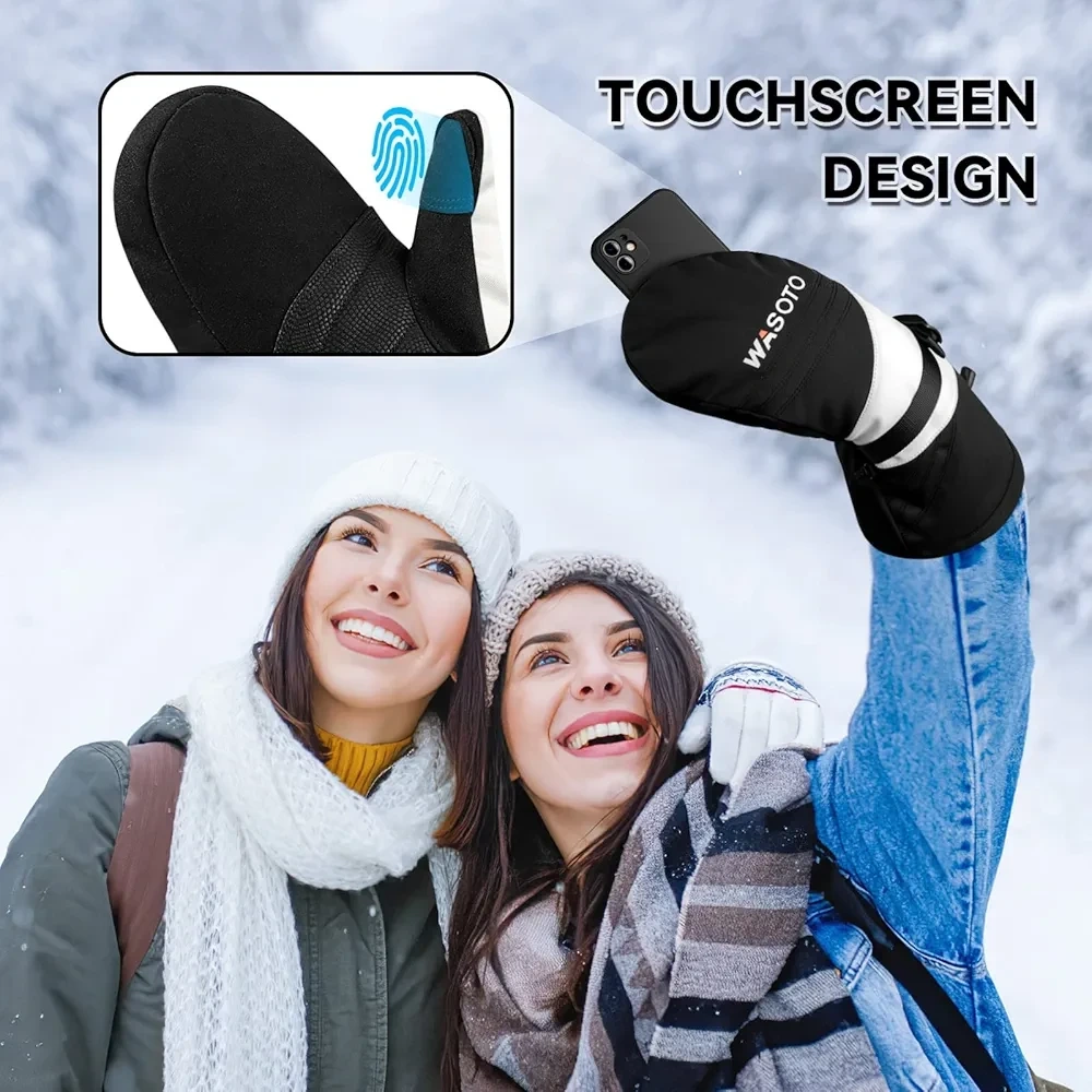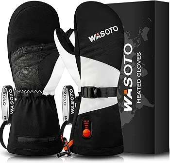 46Size: Large Keep your hands toasty with these WASOTO heated mittens! They're black and white and feature a waterproof zipper. The mittens have anti-abrasion and anti-slip properties, perfect for winter activities. Enjoy up to 8 hours of heating time with adjustable levels!