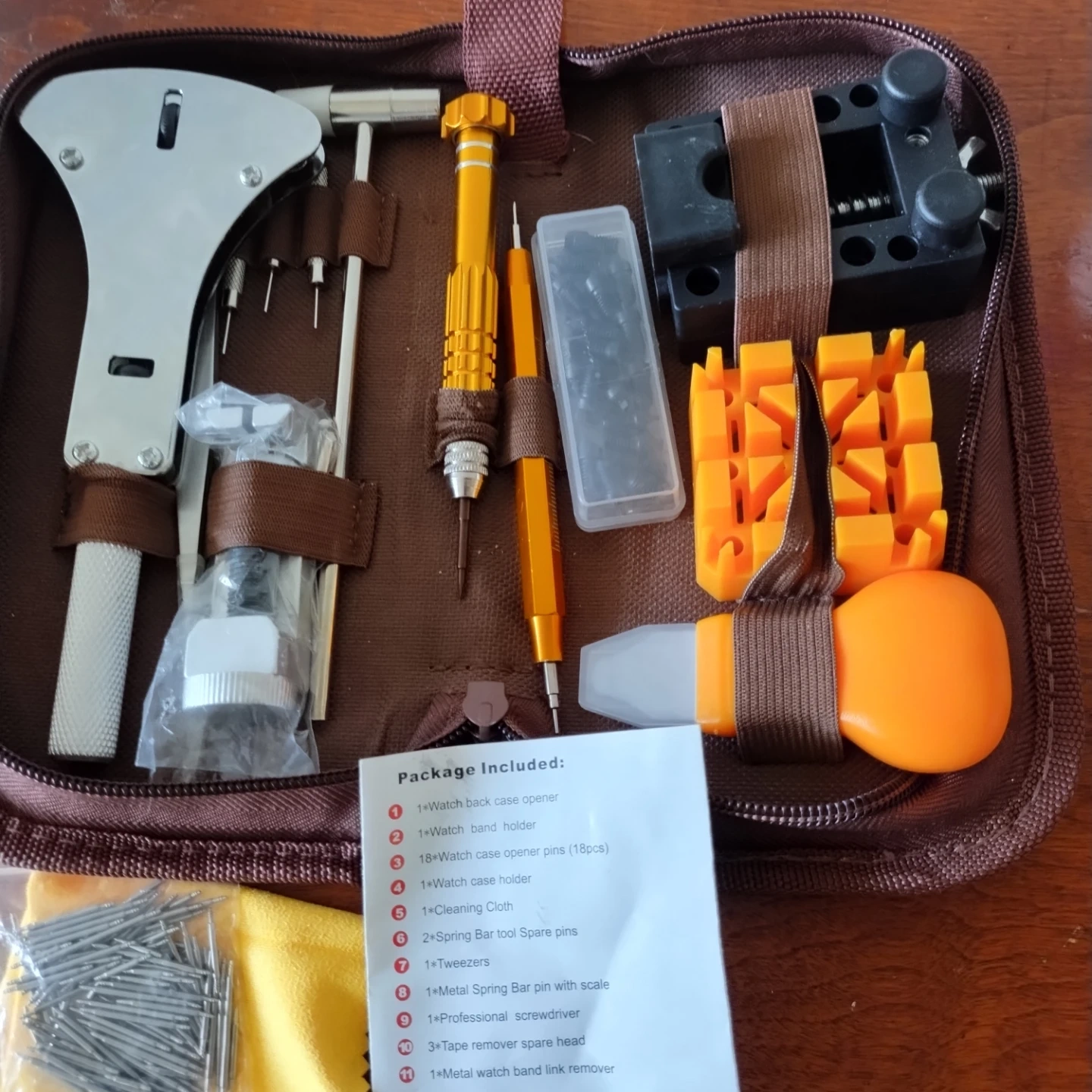 60*. Watch repair kit and led magnifying glasses* Great little side hustle, just in the for the holidays. Both items ch repair kit were bought separately. I bought them thinking I could do it, however I'm now with a visual impairment.. it never got used. Cones in a beautiful leather case Includes led magnifying glasses and the booklet for the wat