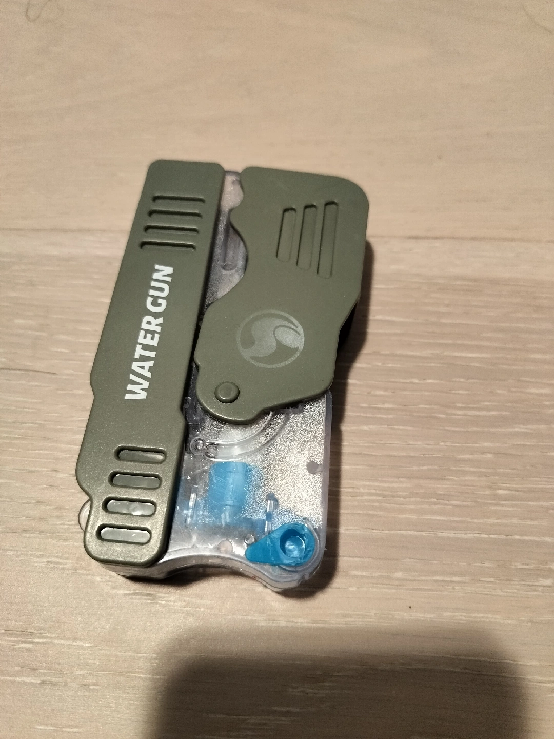 Selling a foldable water gun toy! It's in great condition and ready for some summer fun with portability. The gun is a cool army green colour with a clear water tank so you can see when it's time to refill. Perfect for kids and adults alike!