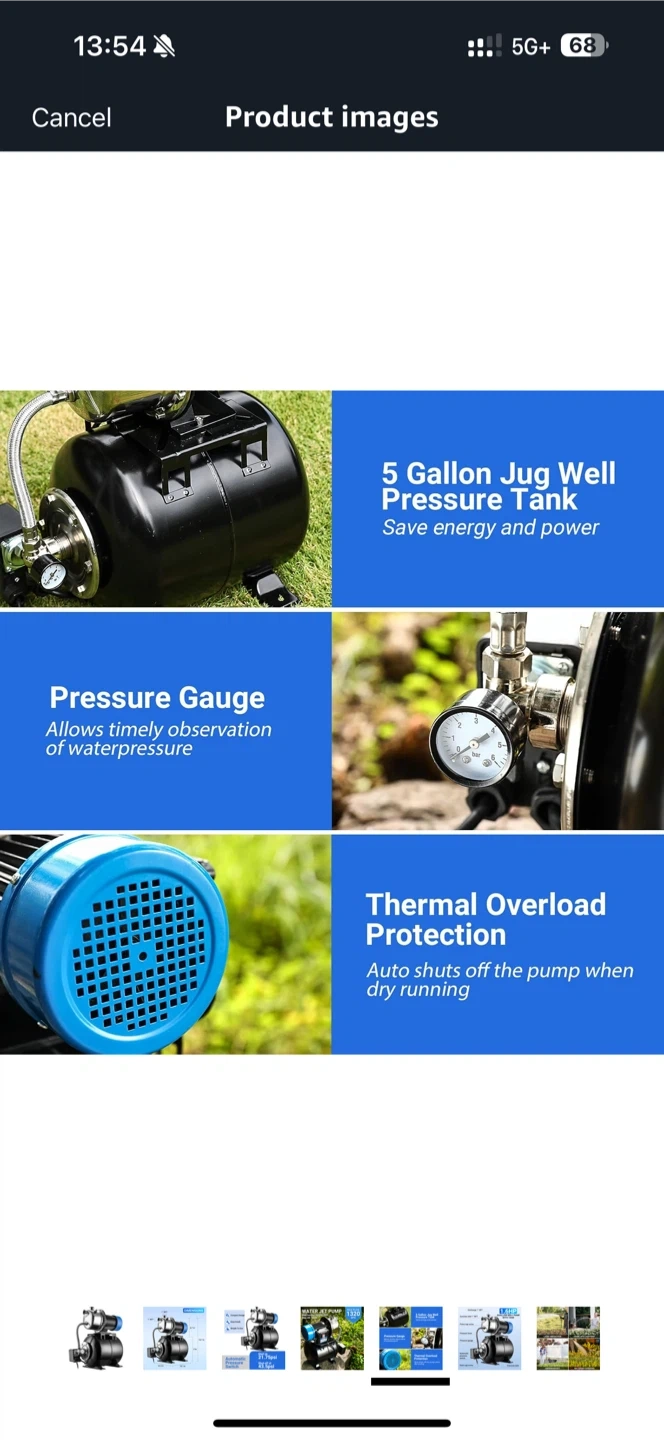39Selling a Water Jet Pump with a max flow of 1320 GPH. It has a max suction height of 26ft and a max lift of 164ft. Features include a 5 Gallon Jug Well Pressure Tank to save energy and power, a pressure gauge, and thermal overload protection. Compact design, easy to install, and simple to use! Dimensions: 8.7in x 19.7in x 11in