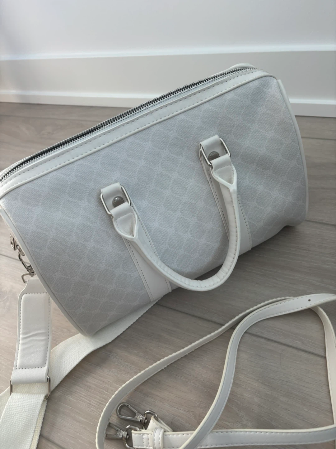 Mini White Steve Madden duffle bag style purse